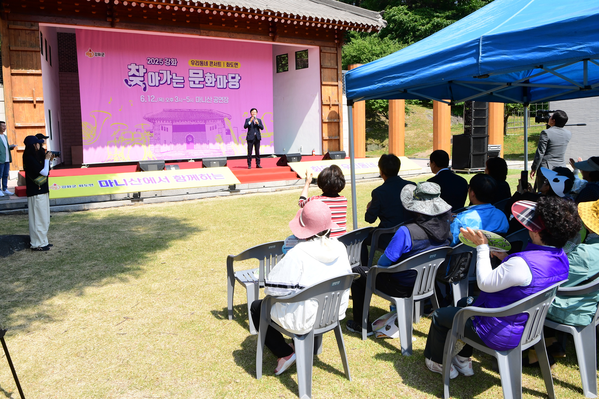강화군(군수 박용철)은 지난 12일 화도면 마니산 공연장에서 ‘2025년 강화 찾아가는 문화마당 화도면 편’을 성황리에 개최했다고 밝혔다.