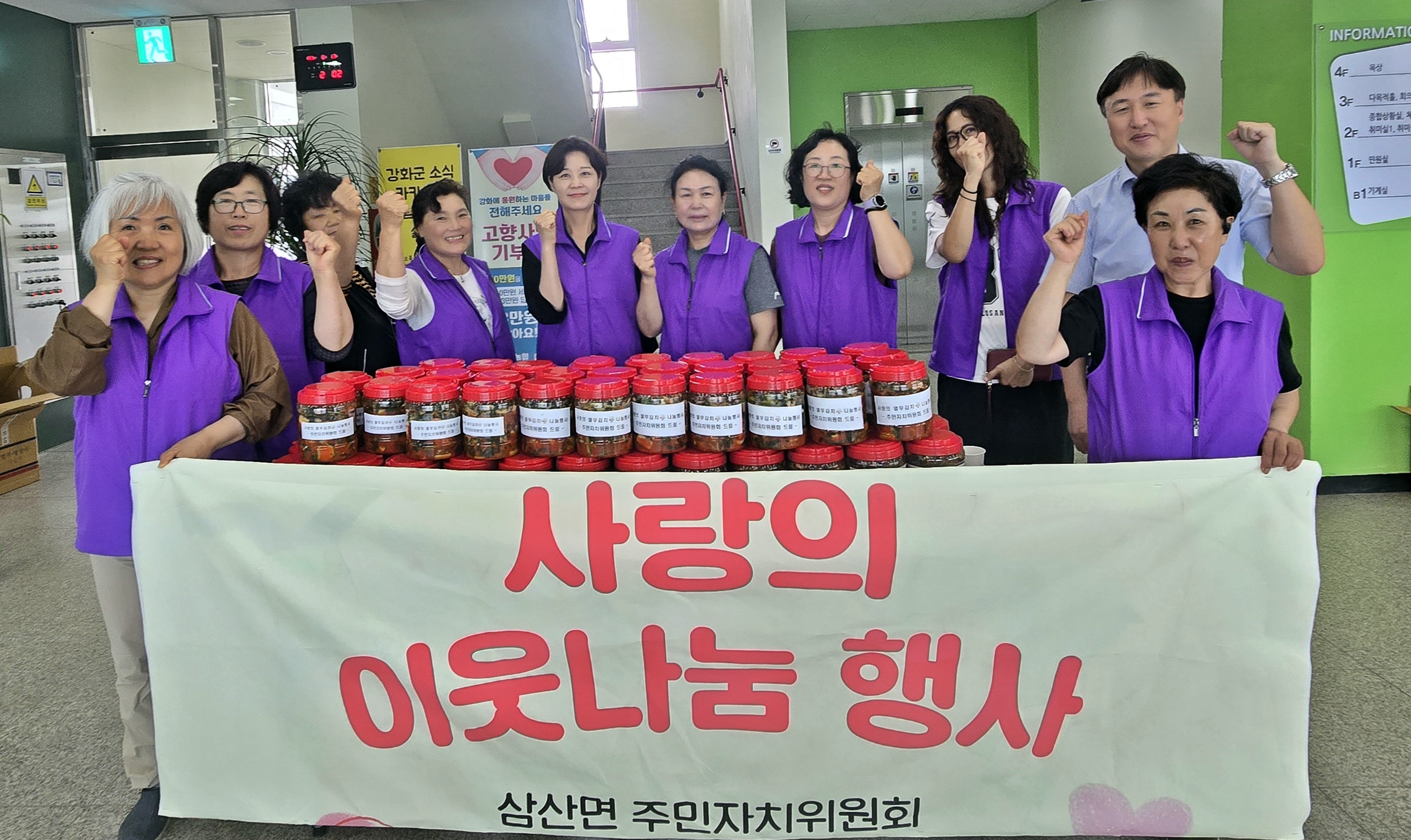 강화군 삼산면 주민자치위원회(위원장 정영란)는 지난 17일, 여름철을 맞아 직접 담근 열무김치를 나누는 ‘사랑의 이웃 나눔 행사’를 개최했다.