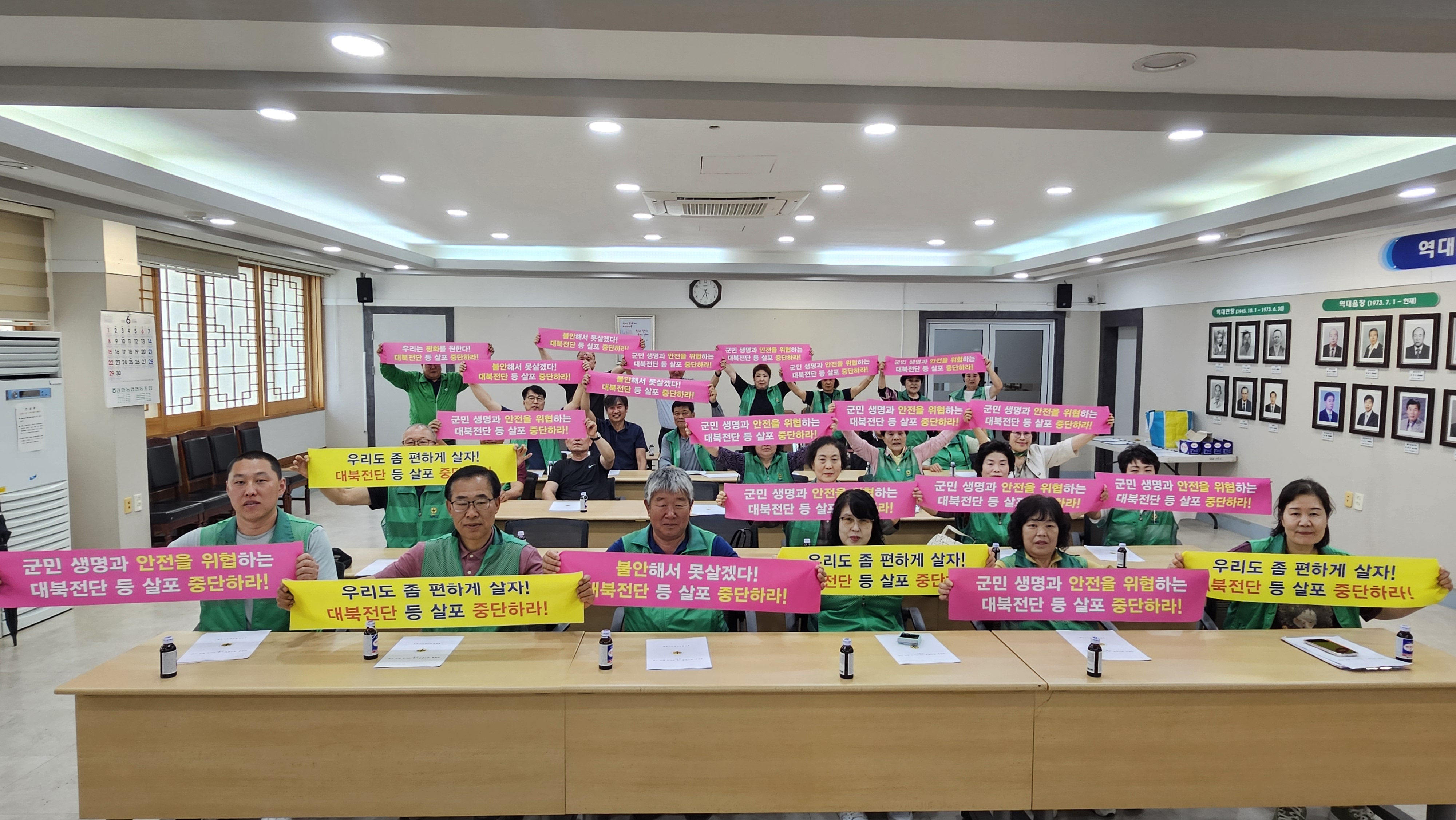 신봉기 회장은 “그간 북측의 대남 확성기 방송으로 주민들이 정신적 스트레스를 겪었지만, 다행히 최근엔 방송이 중단되면서 조금은 숨통이 트였다”며, “대북 전단 살포는 평화를 바라는 군민들의 염원을 저버리는 행위이고, 다시는 주민들이 불안 속에 살아가는 일이 없도록 자제를 촉구한다”고 강조했다.