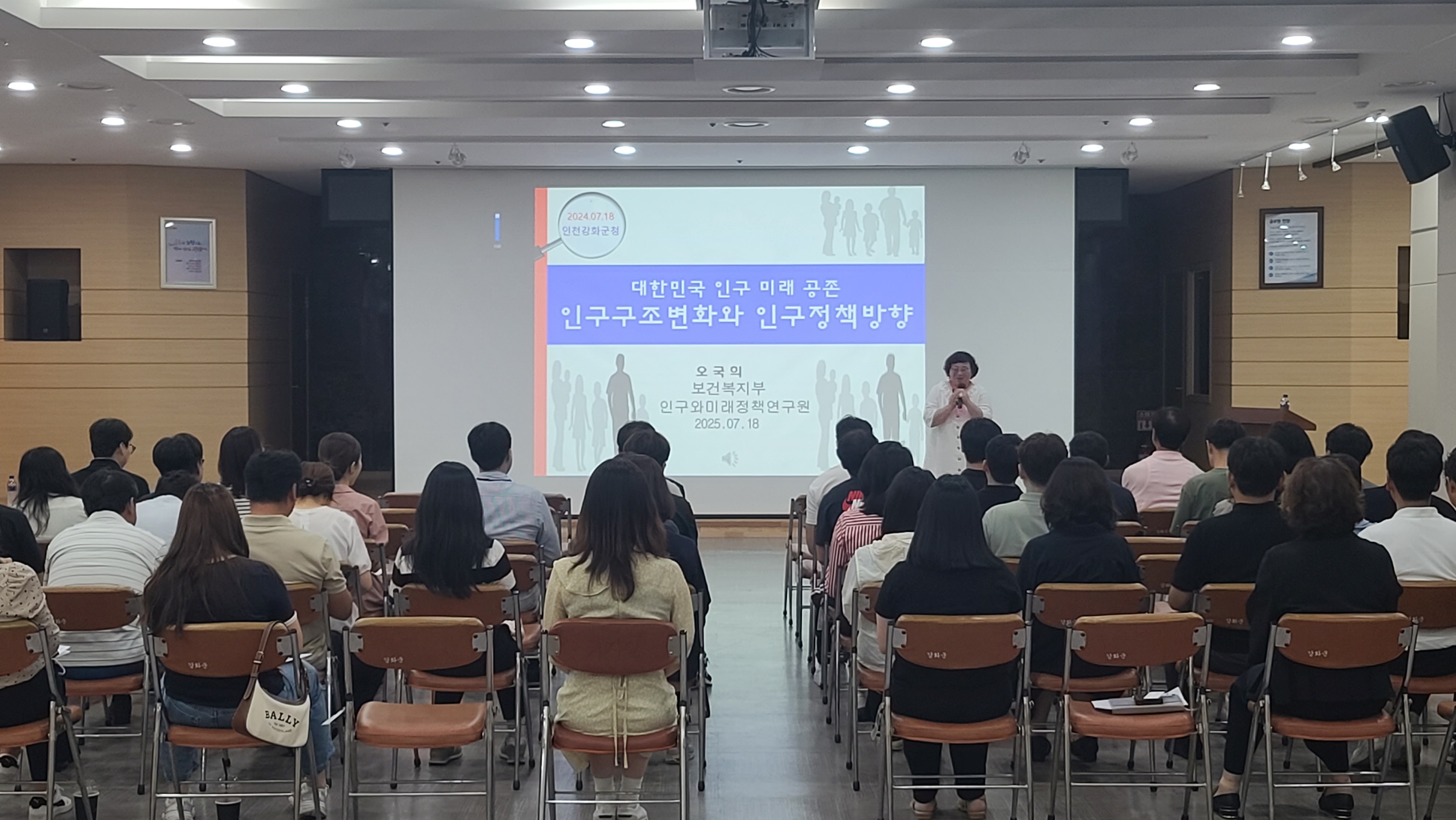 이번 강의에서는 저출산의 사회적 문제점, 고령화에 따른 인구 위기, 지방소멸 등 대한민국이 직면한 사회문제들을 전반적으로 다루면서 이에 대응하는 중앙정부, 지자체, 개인의 대응 방향을 제시하여 참석자들의 관심을 이끌었다.