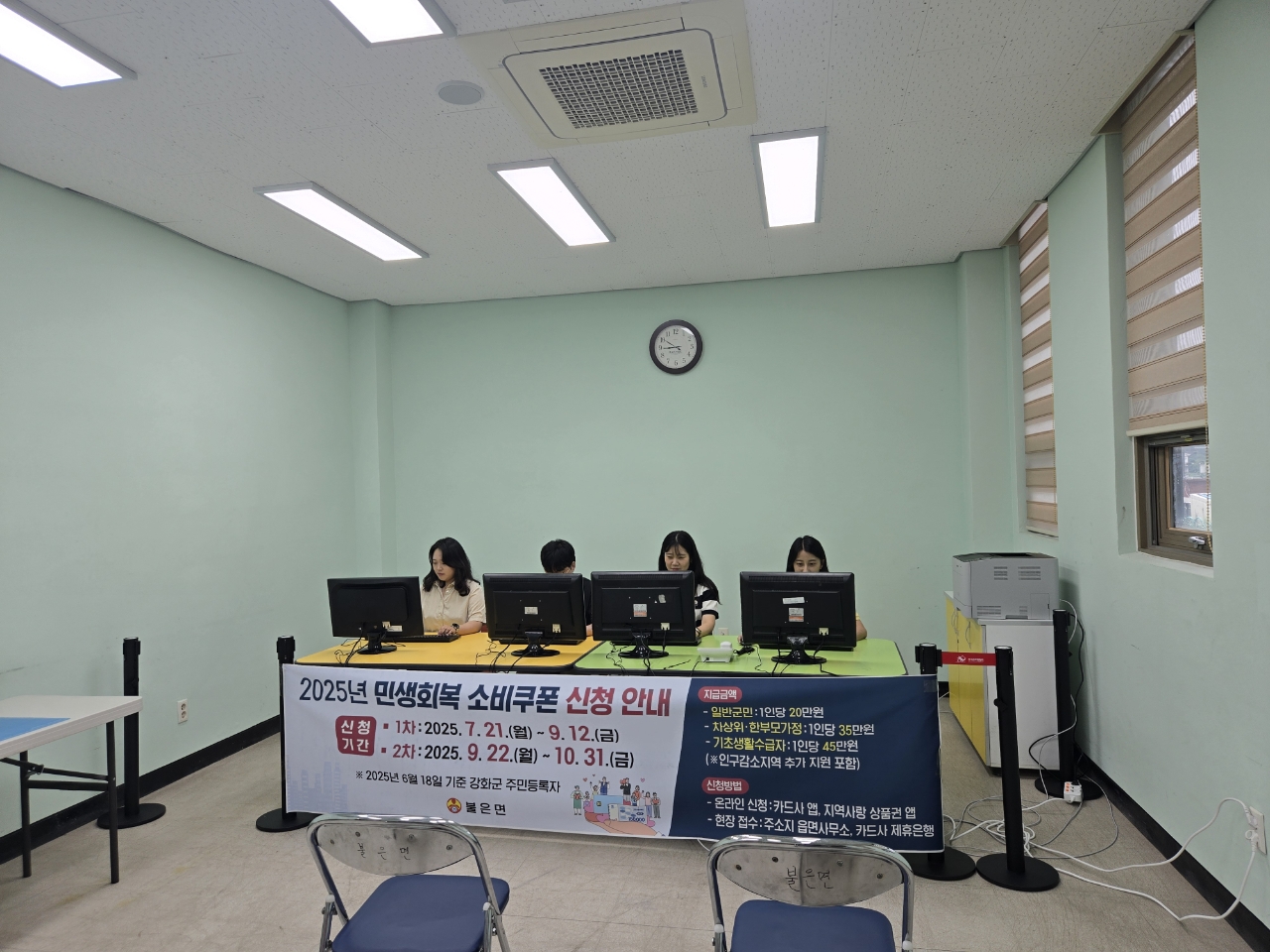 강화군 불은면(면장 윤승구)은 주민자치센터 내에 민생회복 소비쿠폰 전담 접수공간을 마련하고, 주민들의 원활한 신청을 적극 지원하고 있다.