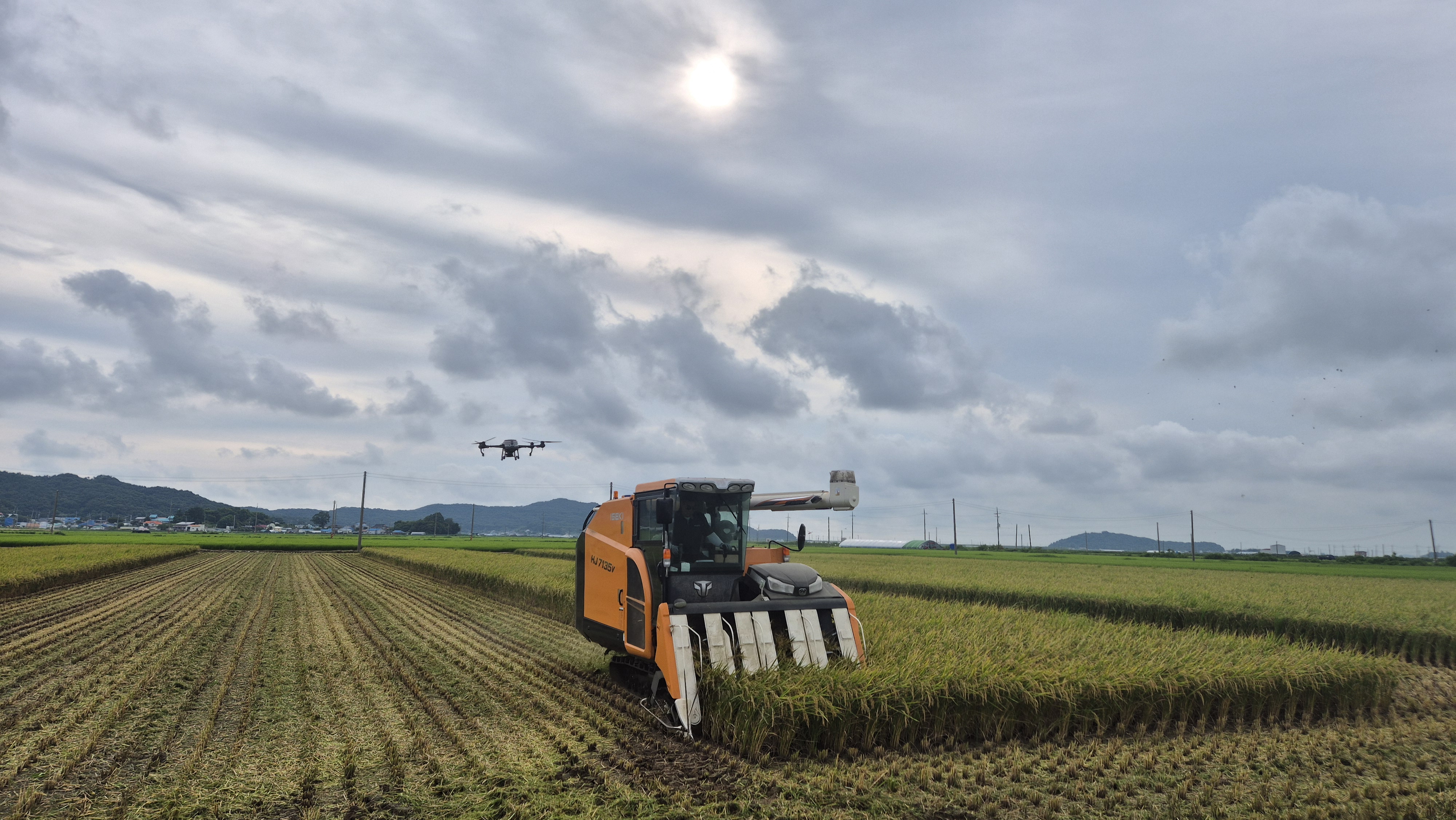 이날 수확한 벼는 지난 5월 2일 이앙 후 95일 만에 수확한 극 조생종 여르미로, 건조와 도정 과정을 거쳐 햅쌀로 판매될 예정이다.