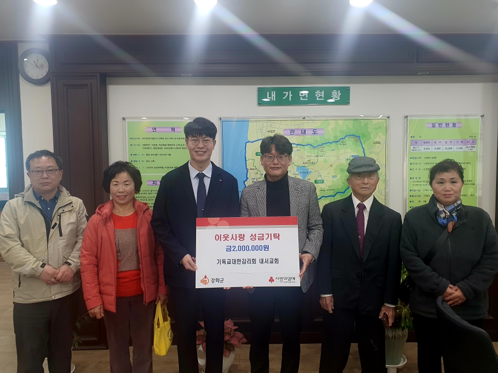 강화군 내가면(면장 차은석)은 기독교대한감리회 내서교회(담임목사 이성호)에서 지난 6일, 지역 내 어려운 이웃을 위해 써달라며 성금 200만 원을 기탁했다고 밝혔다.