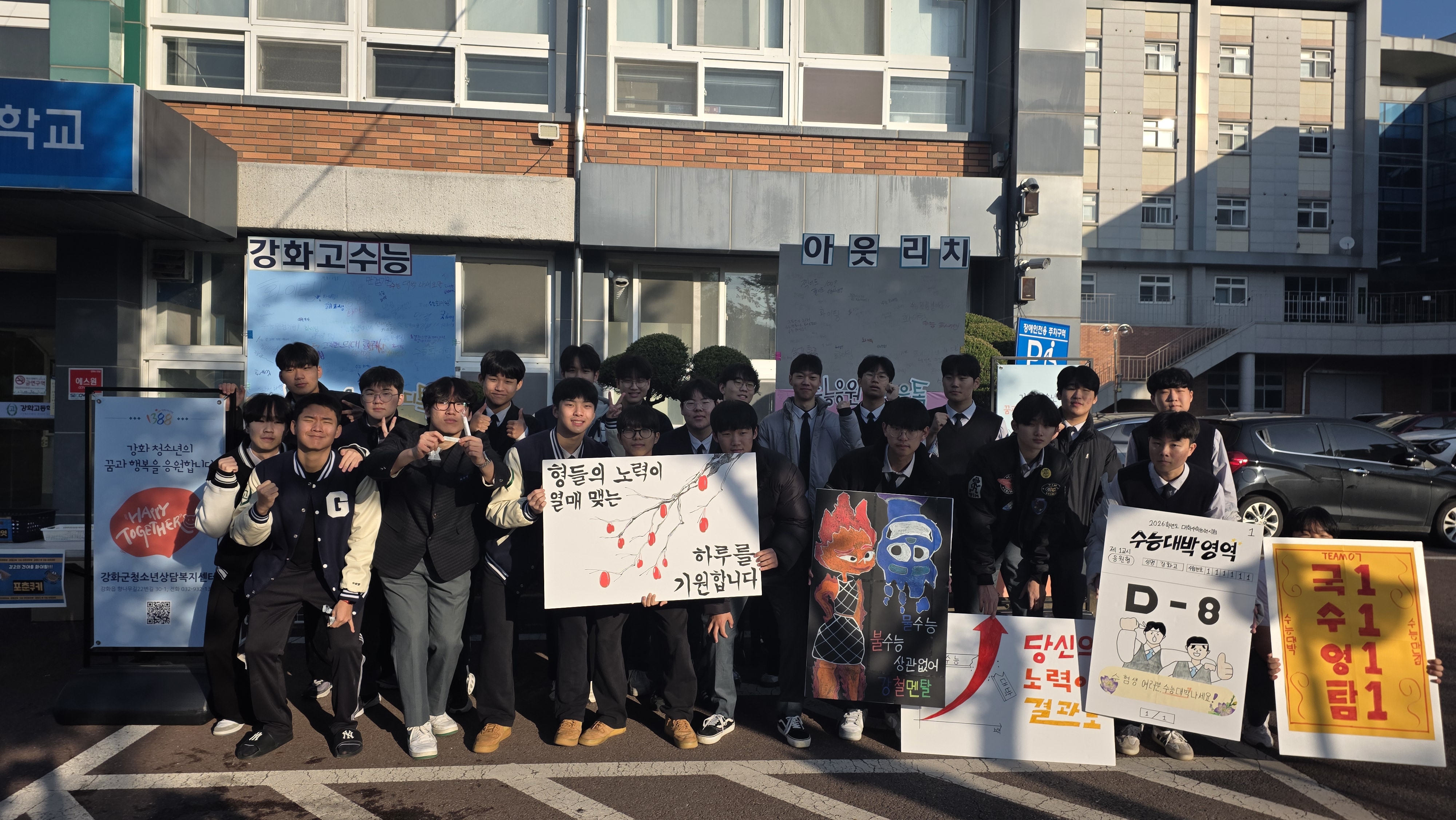 강화군(군수 박용철)은 지난 5일과 6일, 강화고등학교와 강화여자고등학교에서 ‘수능 응원 아웃리치 캠페인’을 진행했다.