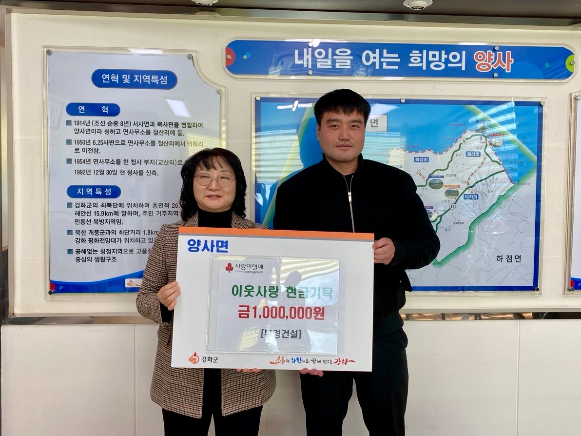 강화군 양사면(면장 이지영)은 지난 9일, 관내 기업과 봉사단체에서 어려운 이웃을 돕기 위한 성금을 양사면에 기탁하며 따뜻한 나눔을 이어가고 있다고 밝혔다.