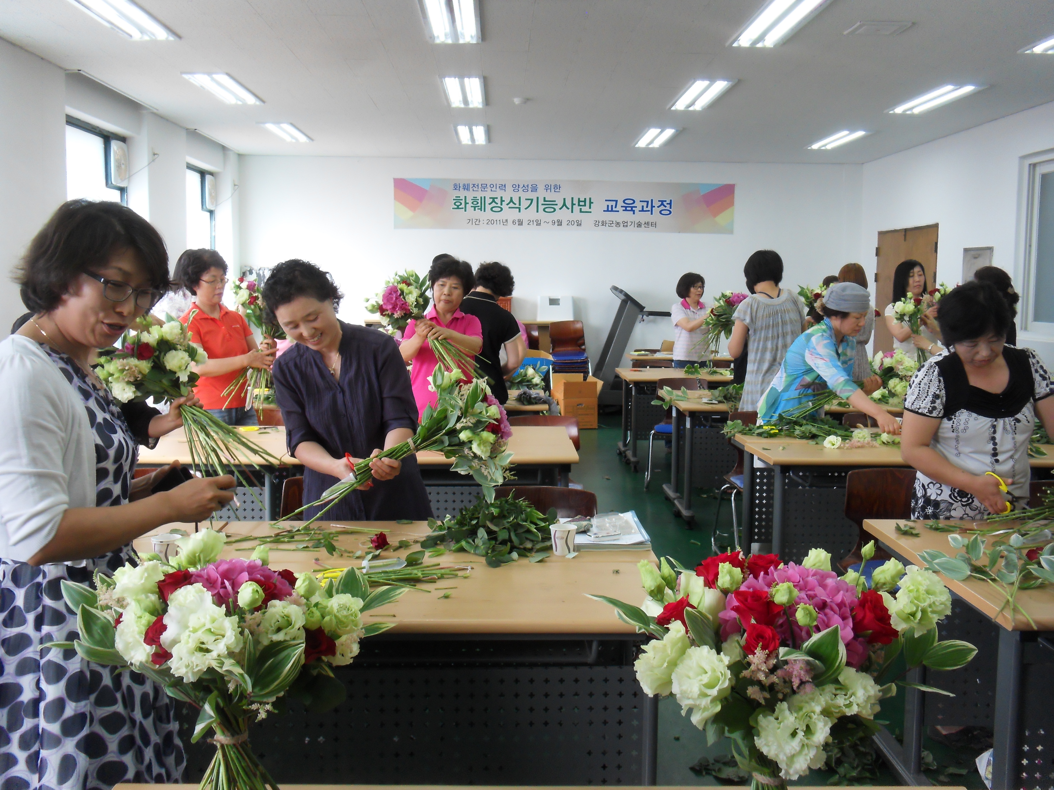 강화군(군수 안덕수)은 일자리 창출기회 확대와 화훼전문인력 양성을 위해 지난 6월부터 3개월 과정의 화훼장식기능사반 교육을 운영한 결과, 교육에 참여한 교육생들이 10월에 있었던 화훼장식기능사 정기시험에 12명이 최종 합격했다고 밝혔다.