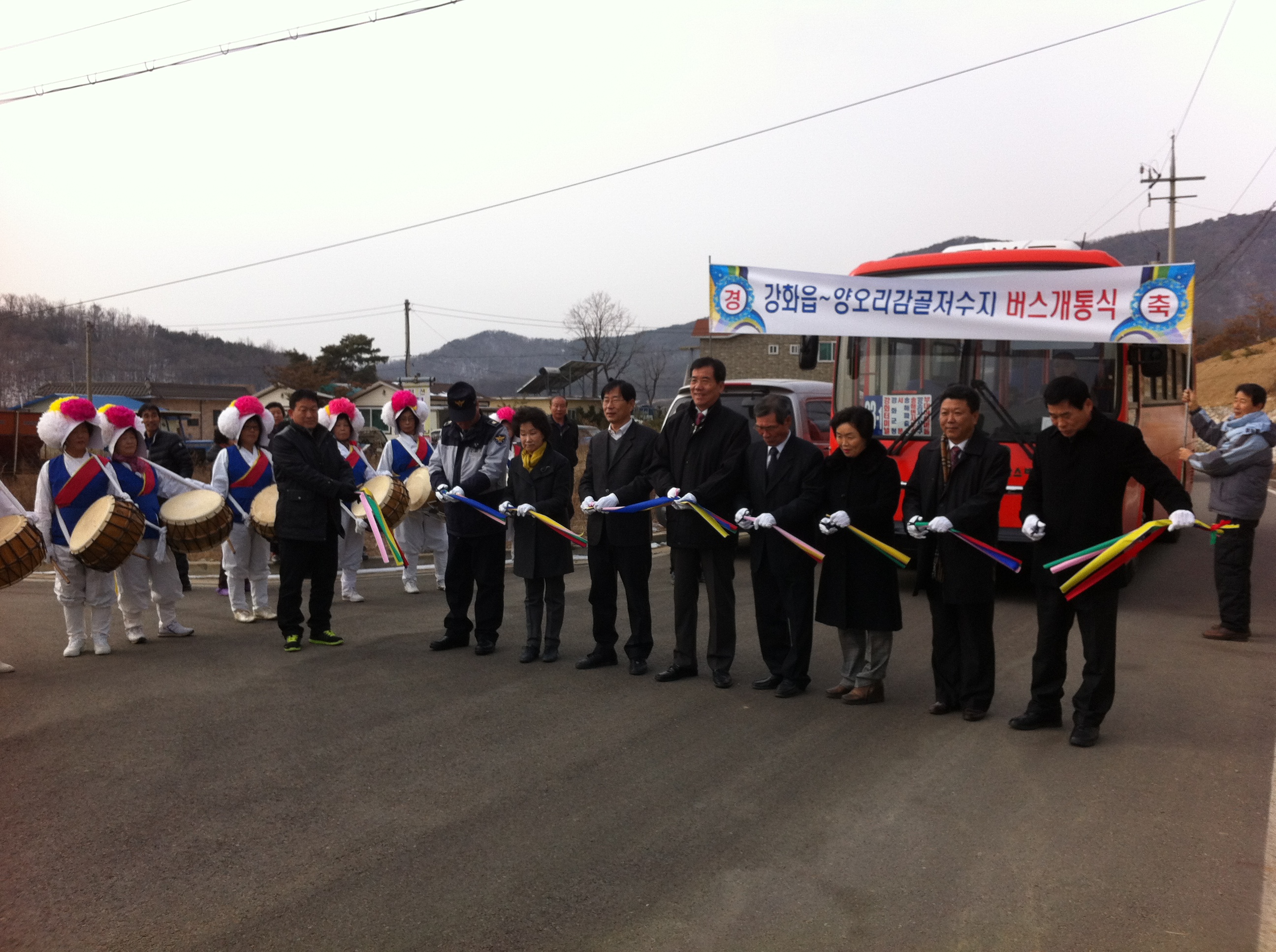 지난 13일 강화군 송해면 양오리 감골 마을에서는 주민 70여명 이 모여 마을에 처음으로 들어오는 버스맞이 행사를 벌였다.