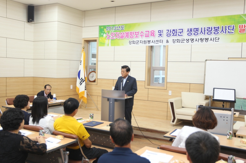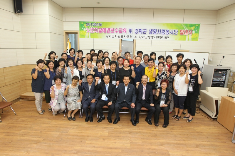이날 발대식에는 생명사랑 봉사단 40여명과 강화군의 봉사단체 회장 10여명이 참석한 가운데 진행됐다. 생명사랑 봉사단은 지난 6월11일부터 3주간의 노인자살 예방 지도사 과정을 수료하고 자격증을 취득한 봉사자들로 구성됐다.