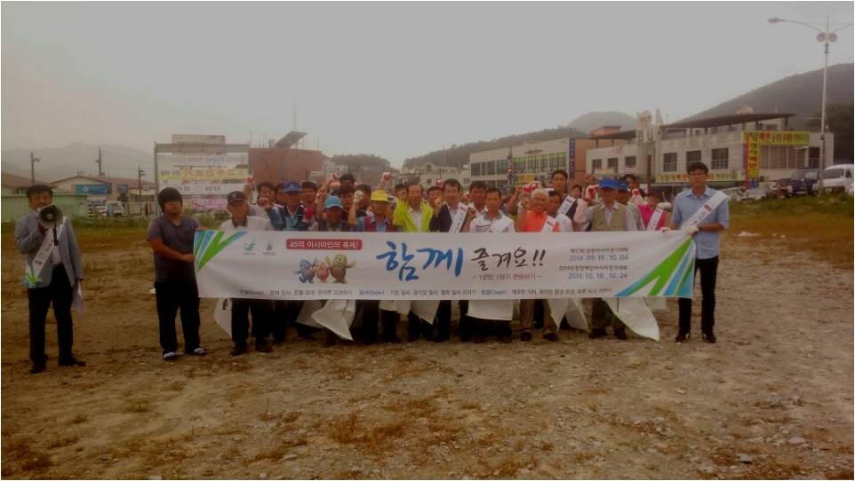 강화군 내가면은 지난 20일(수) 제17회 인천아시아게임의 성공적인 개최를 위해 외포항 및 주요등산로 일대에서 면민참여 붐 조성 결의대회 및 캠페인을 가졌다.