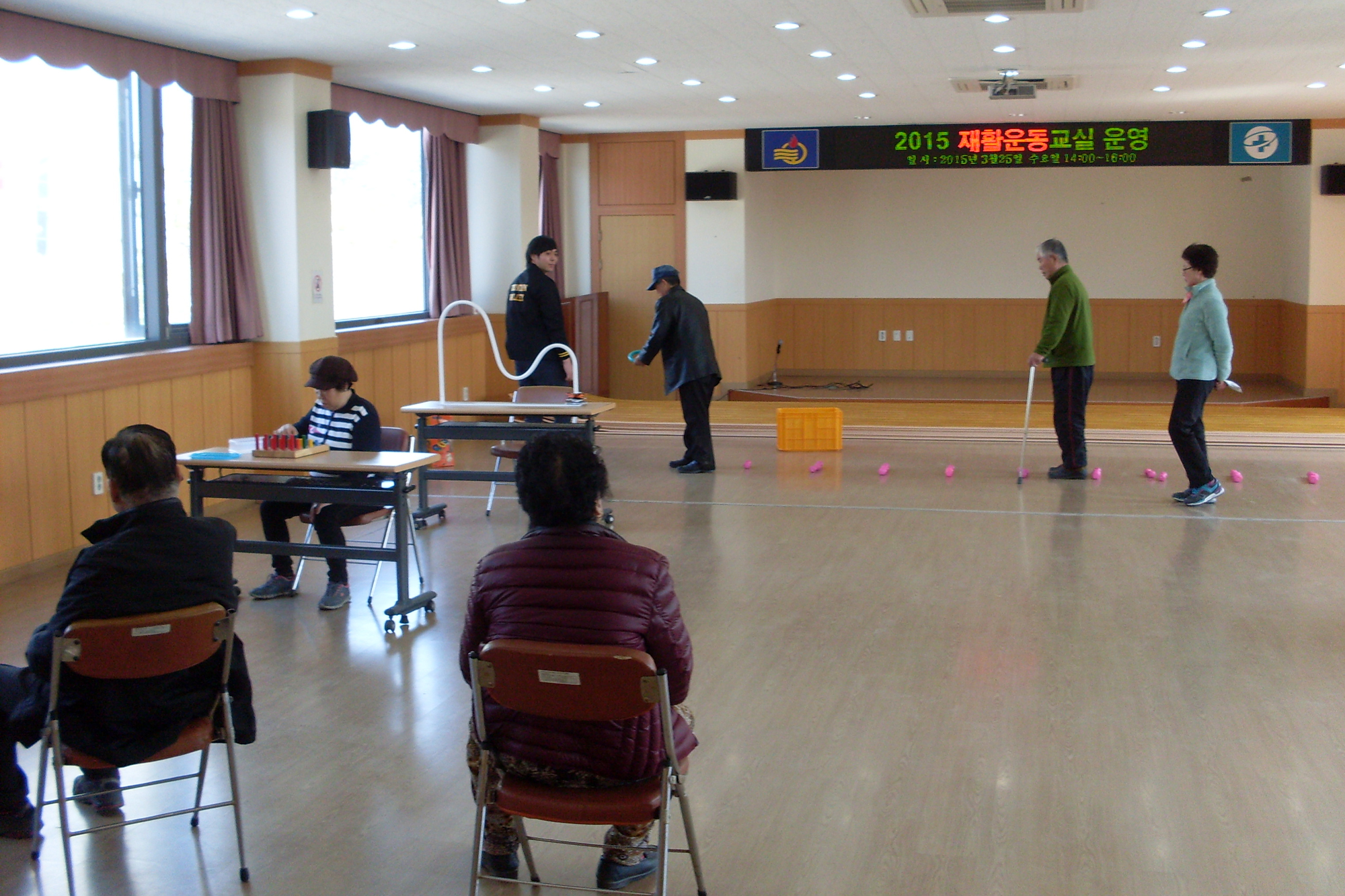“재활운동교실”은 거동가능한 뇌병변 장애인을 대상으로 3월부터 5월까지 8회에 걸쳐 운영하며, 대상자가 8개의 과제를 쉬지 않고 순환식으로 운동함으로써 스스로 운동하는 능력을 키워 일상 생활에서 활동성을 높일 수 있다.