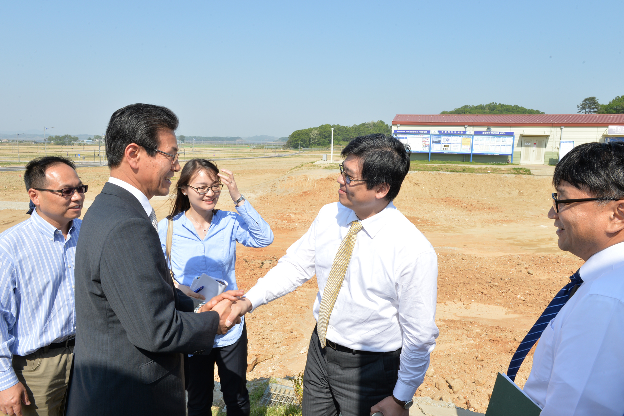 이처럼 적극적인 지원 약속에 대하여 리노그룹 대표단은 감사의 마음을 전하며, 1시간 30분 동안 세밀하면서도 화기애애한 분위기로 현장 확인이 진행되어 산업단지 내에 첫번째 외국기업 투자유치의 기대감을 느낄 수 있었다.