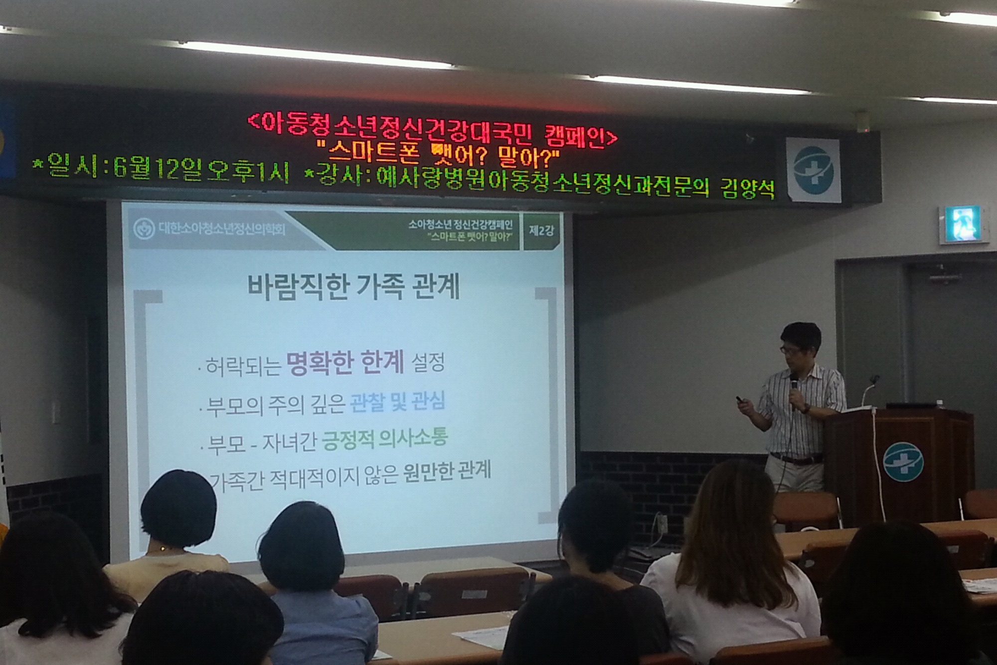 6월 11일 강화군보건소에서 초․중․고 학부모 및 교사 대상 공개강좌 실시