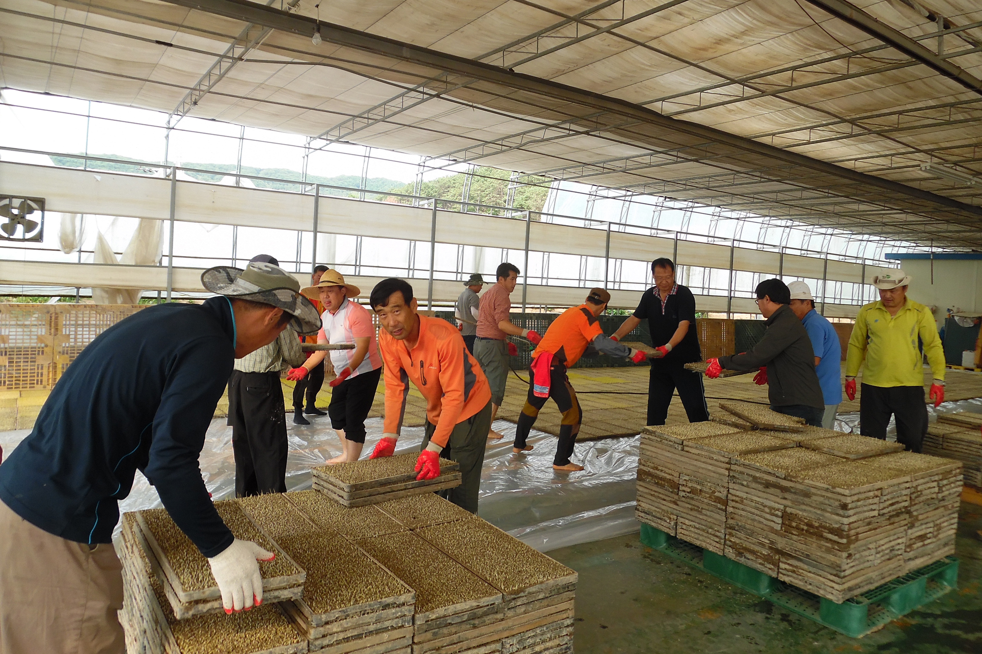 이를 위해 군으로부터 조생종 볍씨 415㎏와 인공상토 540포를 지원받아 지난 16일 이장단에서 강화남부농협 불은지점 육묘장에 모판 2,500장을 파종한 바 있다.