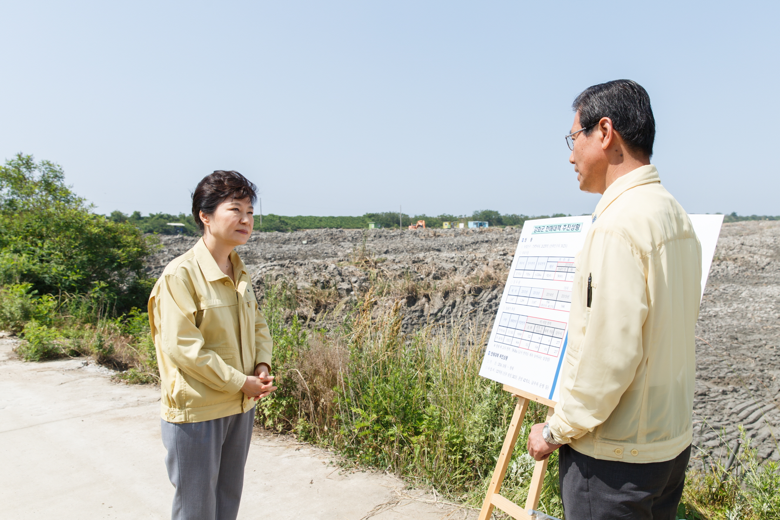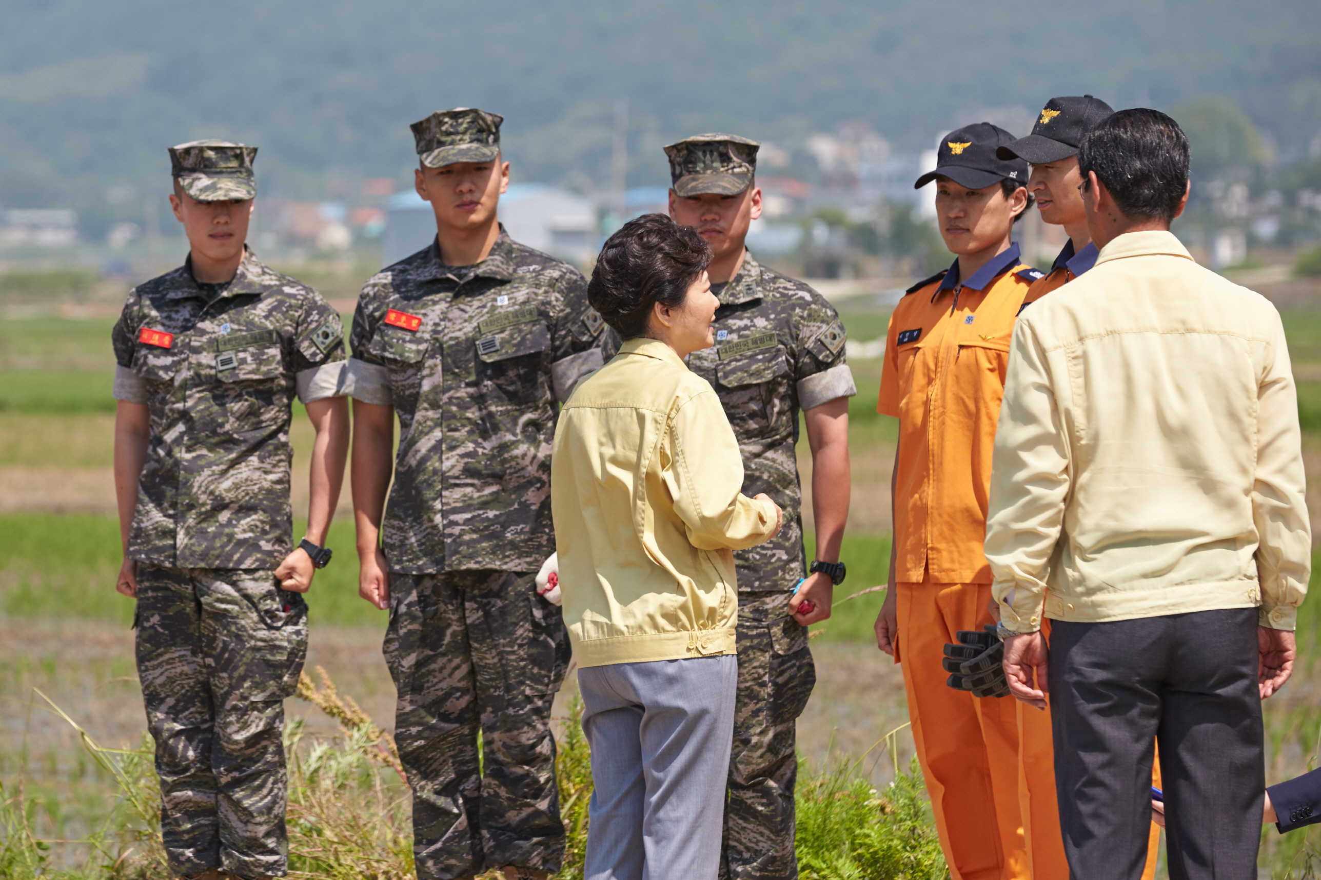 박근혜 대통령은 21일 가뭄 최대 피해지역인 강화군 한해지구 현장을 방문하였다.