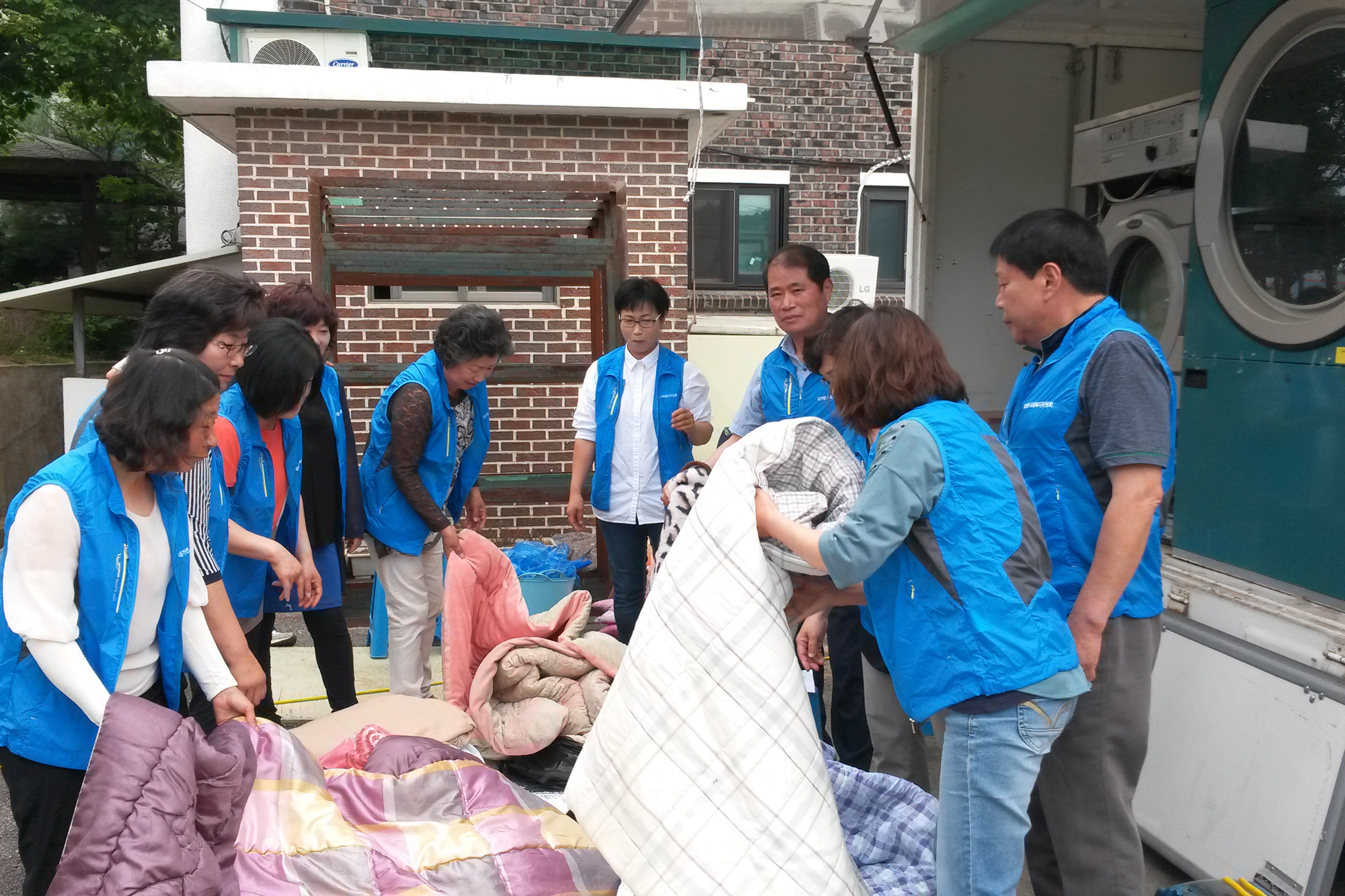 이날 복지위원 10여명은 몸이 불편해 이불이나 부피가 큰 빨래를 하지 못하는 홀몸 어르신이나 장애인가구, 경로당을 직접 방문해 빨래를 수거해 세탁한 후 건조시켜 집까지 배달했다.