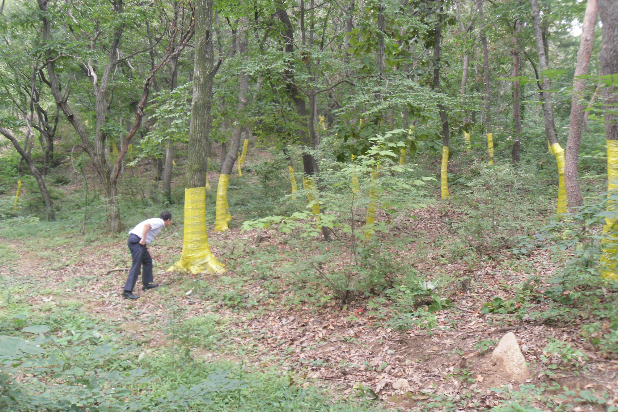 (사진자료 : 참나무에 롤트랩 설치 사진)