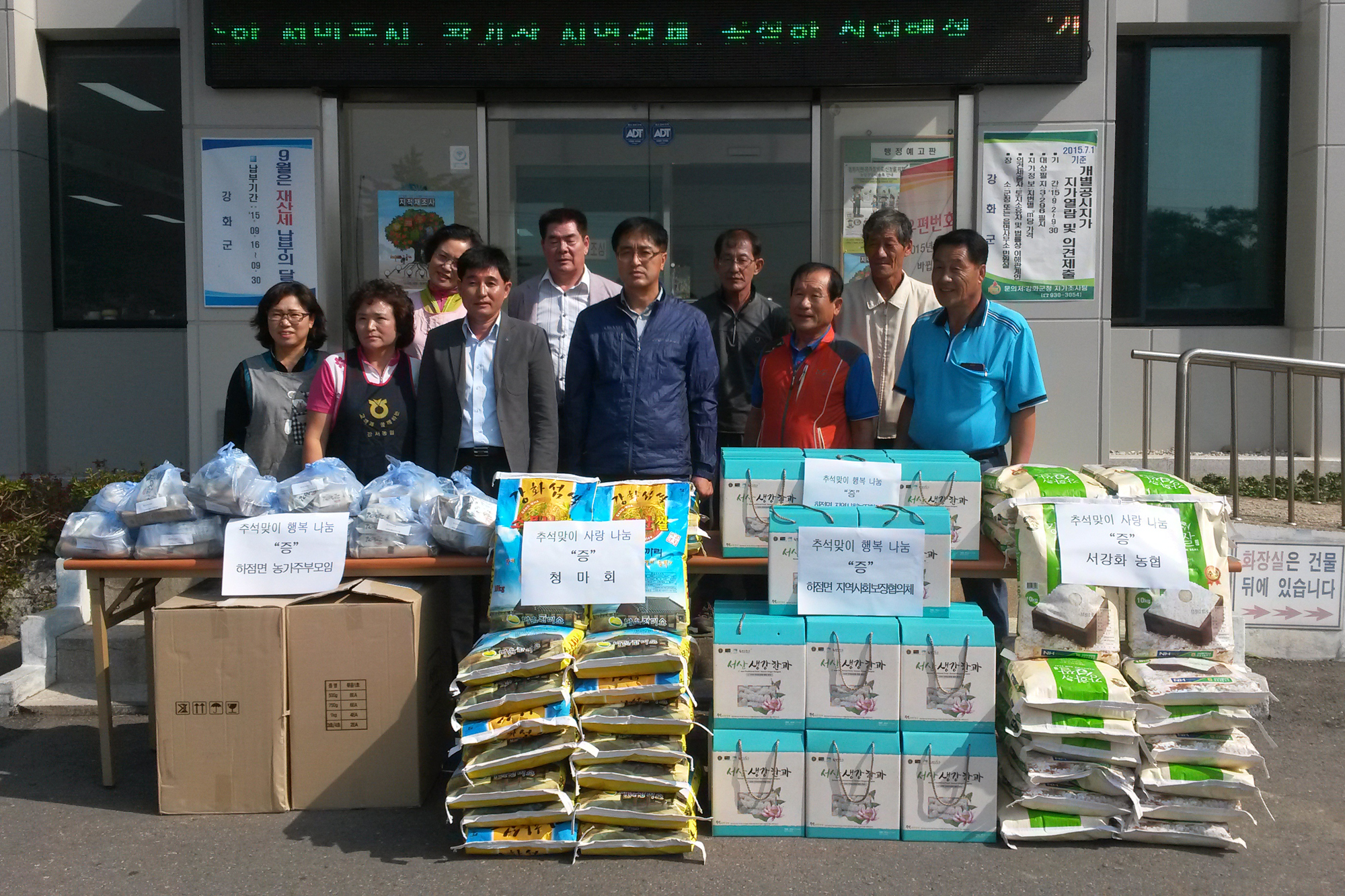 화창한 날씨 속에 사회보장협의체 위원들, 청마회, 서강화농협, 농가주부 모임 회원들은 바쁜 농번기에도 불구하고 추석을 맞아 여러 단체들이 혼연일체가 되어 정성스럽게 마련한 물품들을 어려운 이웃들과 나누면서 따뜻한 온정이 전달되어 보람된다고 밝혔다.