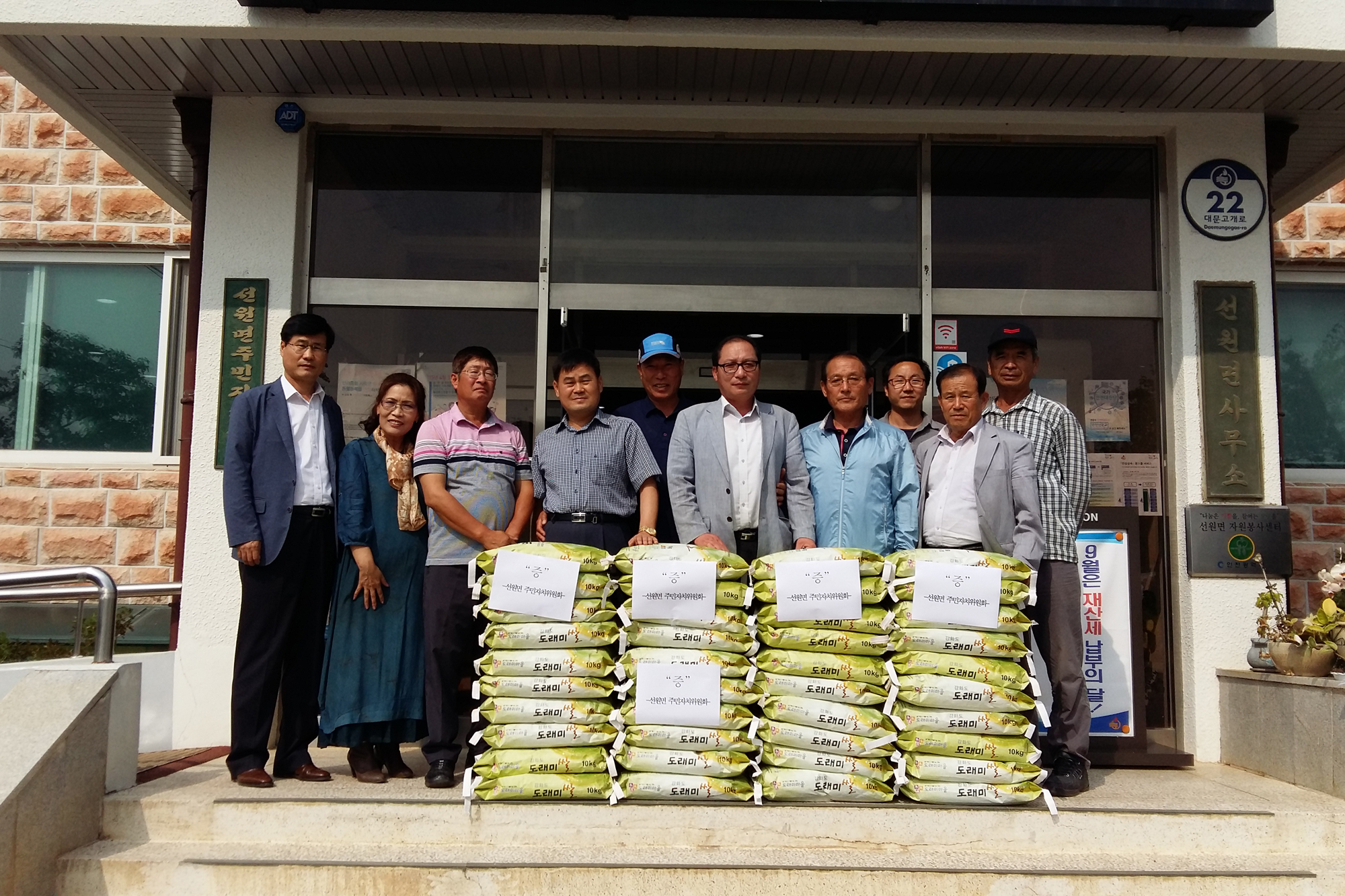 (사진: 선원면주민자치위원회에서 쌀을 기증하고 있다)