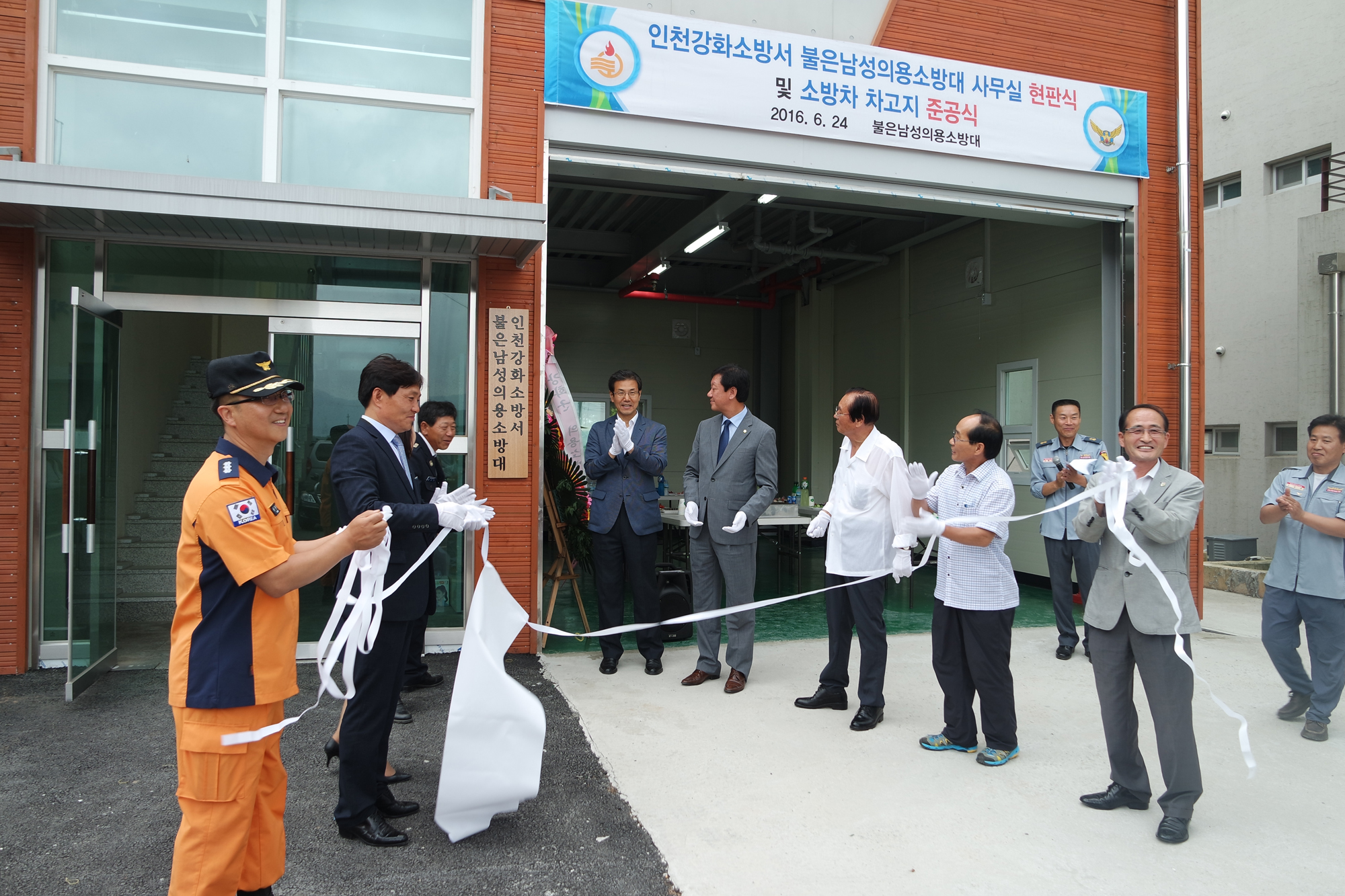 강화군 불은면(면장 한재우)은 지난 24일 불은의용소방대(대장 황인구) 현판식 및 소방차 차고지 준공식을 개최했다.