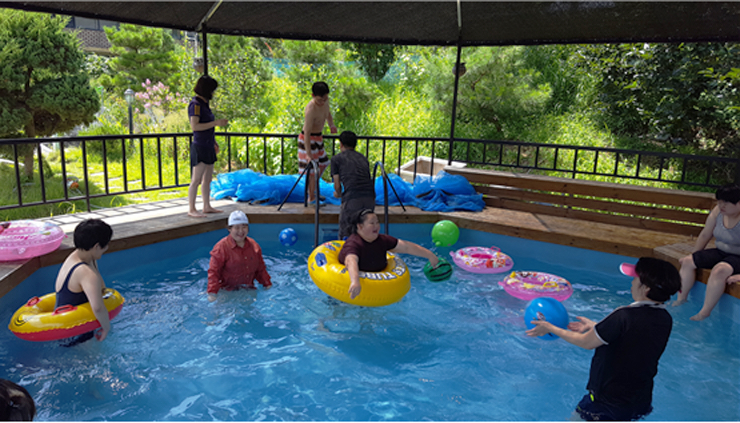 이날 여름철 물놀이 안전사고 예방을 위한 안전수칙을 미리 숙지한 후, 시원한 물놀이를 만끽하며 저마다 즐거운 표정으로 재미난 물놀이 시간을 가졌다. 또한, 레크리에이션, 보물찾기, 간식(무쌈) 만들기 등의 활동을 통해 이용자들 간에 친밀감을 향상시킬 수 있었다.