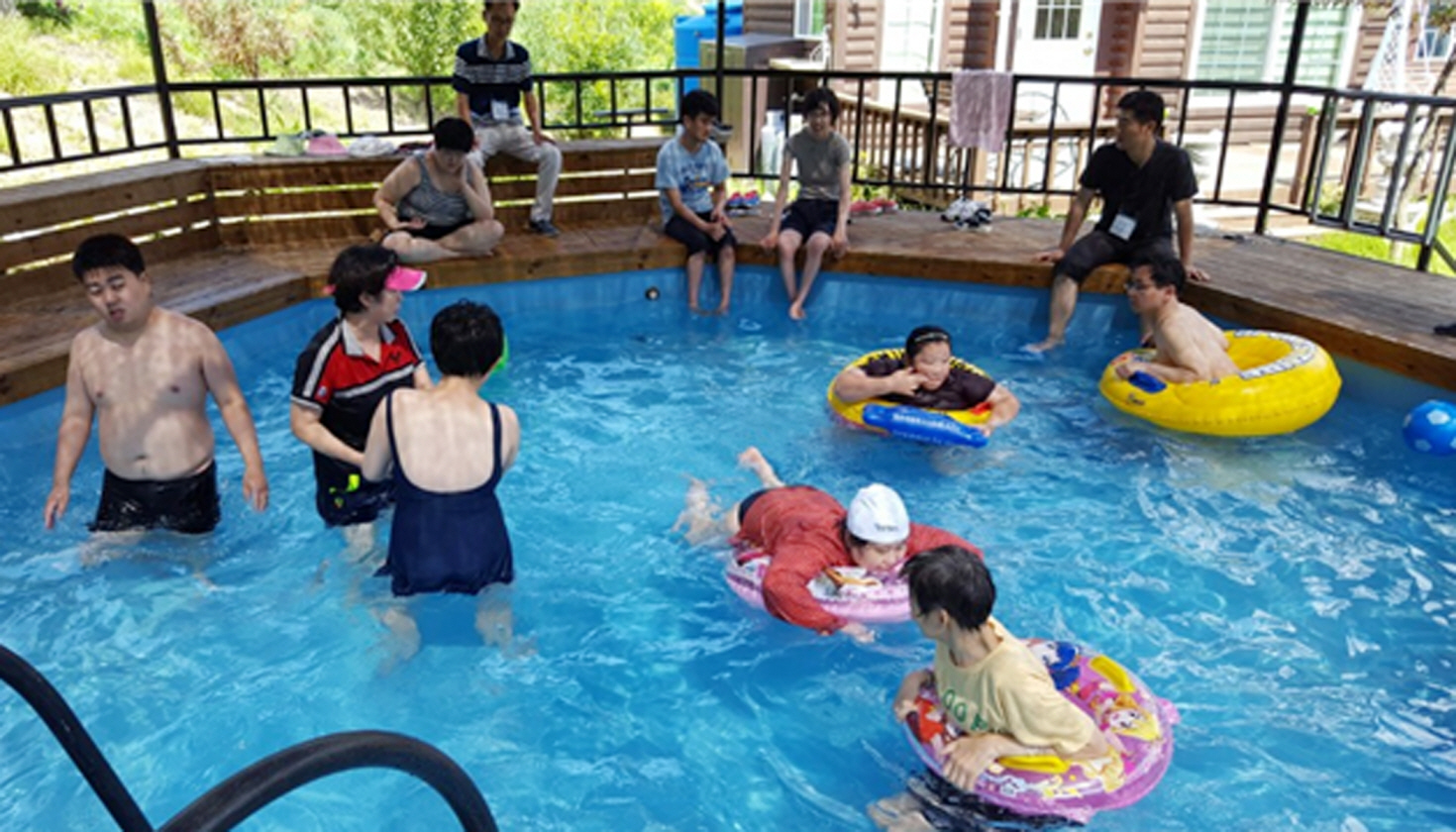 강화군장애인복지관은 지난 11일 강화군 강화읍 국화리에 위치한 ‘아트밸리 펜션’ 수영장에서 중증장애인 11명과 직원, 자원봉사자가 함께 참여해 ‘물놀이 캠프’를 개최했다.