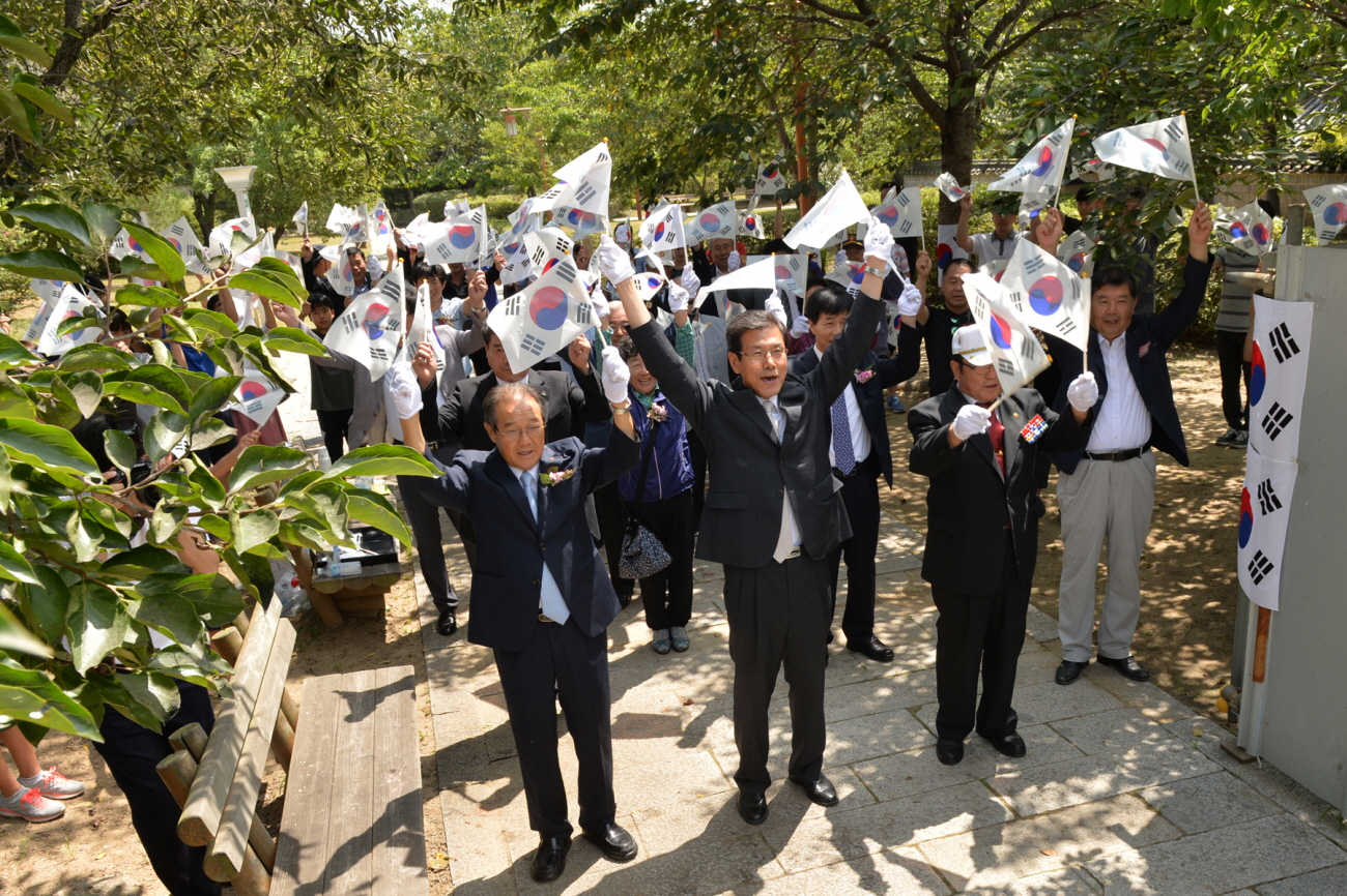 2. 고려궁지에서 군민들이 만세삼창을 하고 있다.