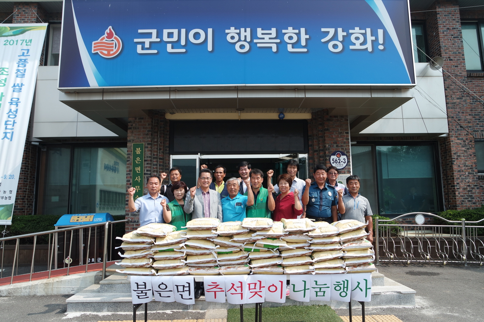 강화군 불은면(면장 정범종)은 지난 8일 이웃과 온정을 나누고자 추석맞이 쌀 나눔 행사를 가졌다.