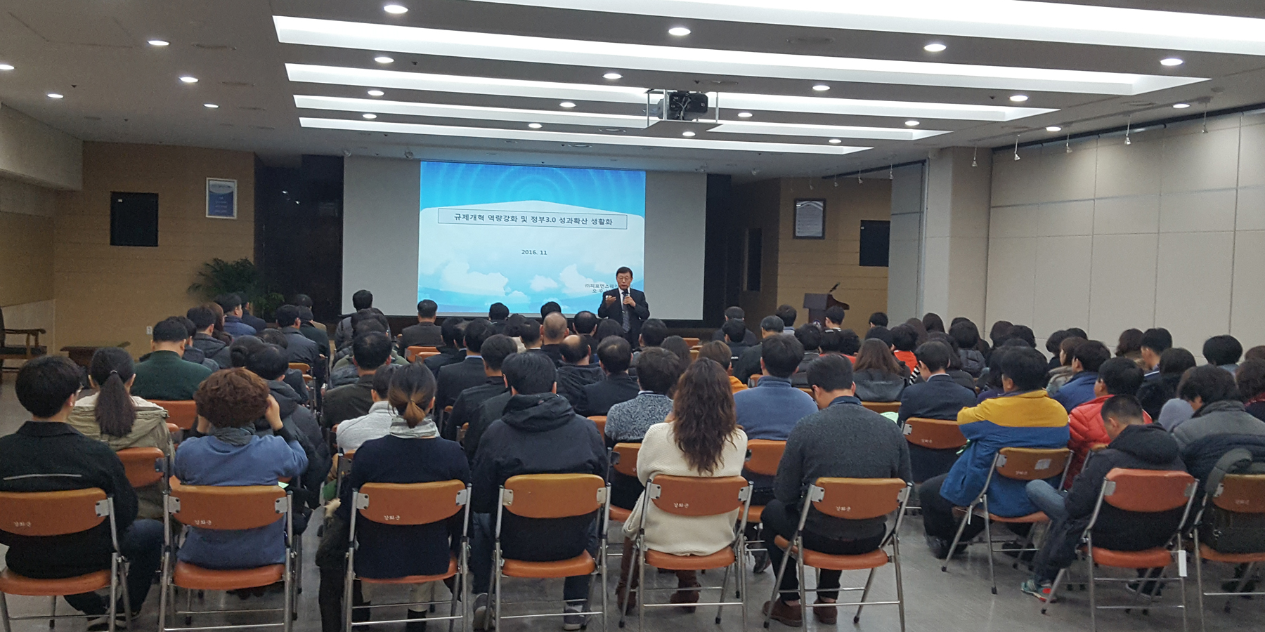 교육에 참석한 한 직원은 “그동안 규제개혁과 정부 3.0 생활화에 대해 막연하고 어렵게 생각했는데 사례중심의 교육을 통해 이해의 폭을 넓히는데 도움이 됐다”며, “앞으로 예산을 들이지 않고도 군민의 삶의 질을 높이고 지역발전에 큰 역할을 하는 규제개선에 능동적으로 참여할 것”이라고 말했다.