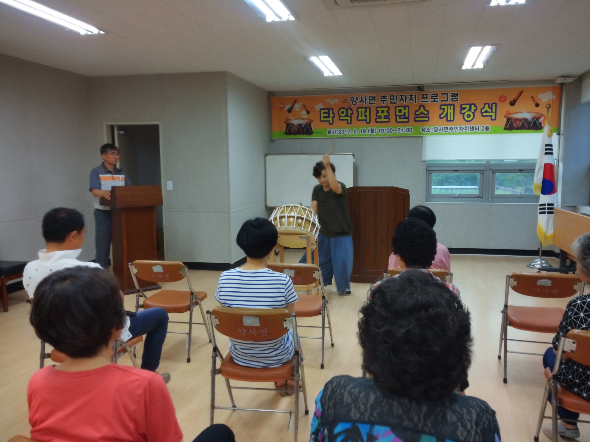 강화군 양사면 주민자치센터에서는 지난 19일 ‘타악퍼포먼스’ 프로그램을 신규로 개강 했다.