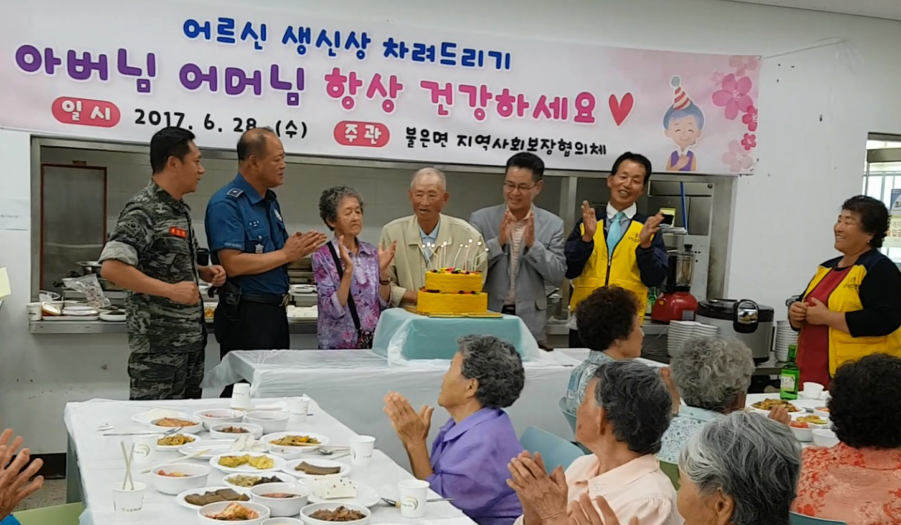 정범종 불은면장은 “어르신들의 건강을 기원드리고 기쁨을 나누고자 생신상을 마련하였으니 맛있게 드시고 항상 건강하시길 기원하다”고 전하고 협의체에는 “더운 날씨에 며칠 전부터 행사를 준비하시느라 노력해주셔서 감사하고 앞으로도 여러 활동을 통해 이웃에게 행복을 전하는데 최선을 다하자” 당부했다.