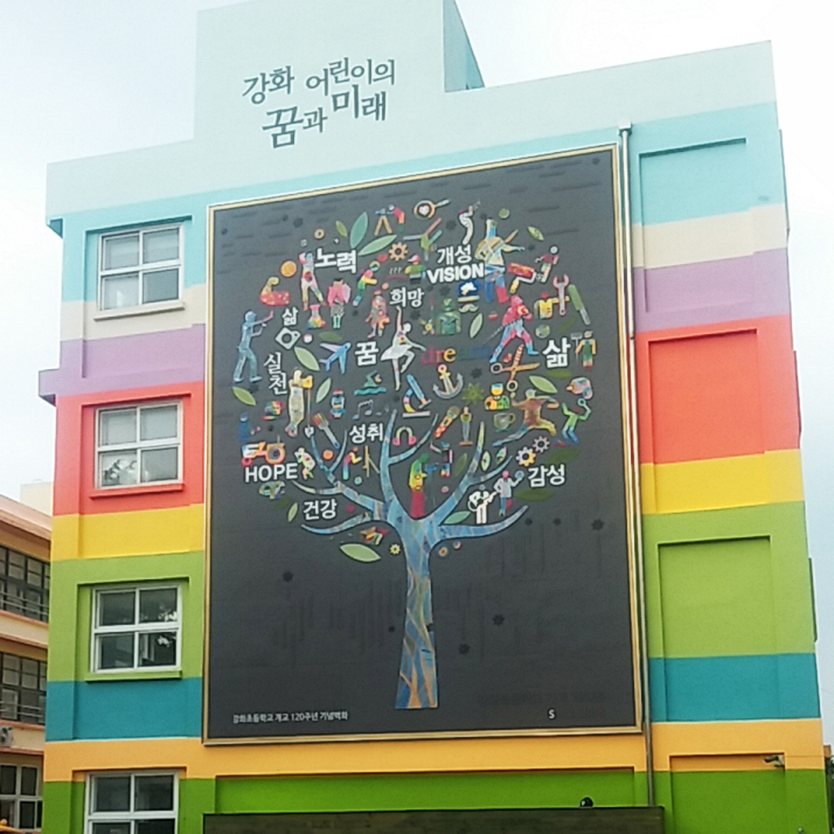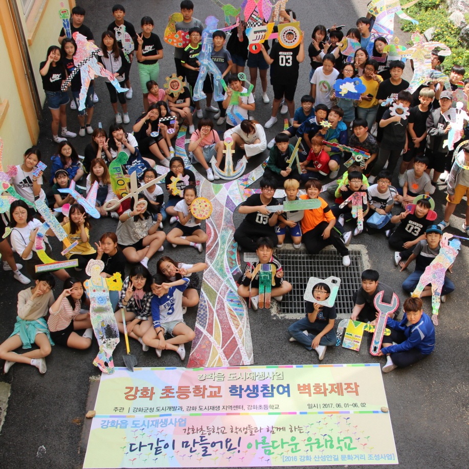 인천 강화군(군수 이상복)은 도시재생사업의 일환으로 추진하는 강화읍 문화거리 조성사업의 테마로 강화초등학교(교장 김성환)에 벽화조형물을 설치했다고 지난 30일 밝혔다.