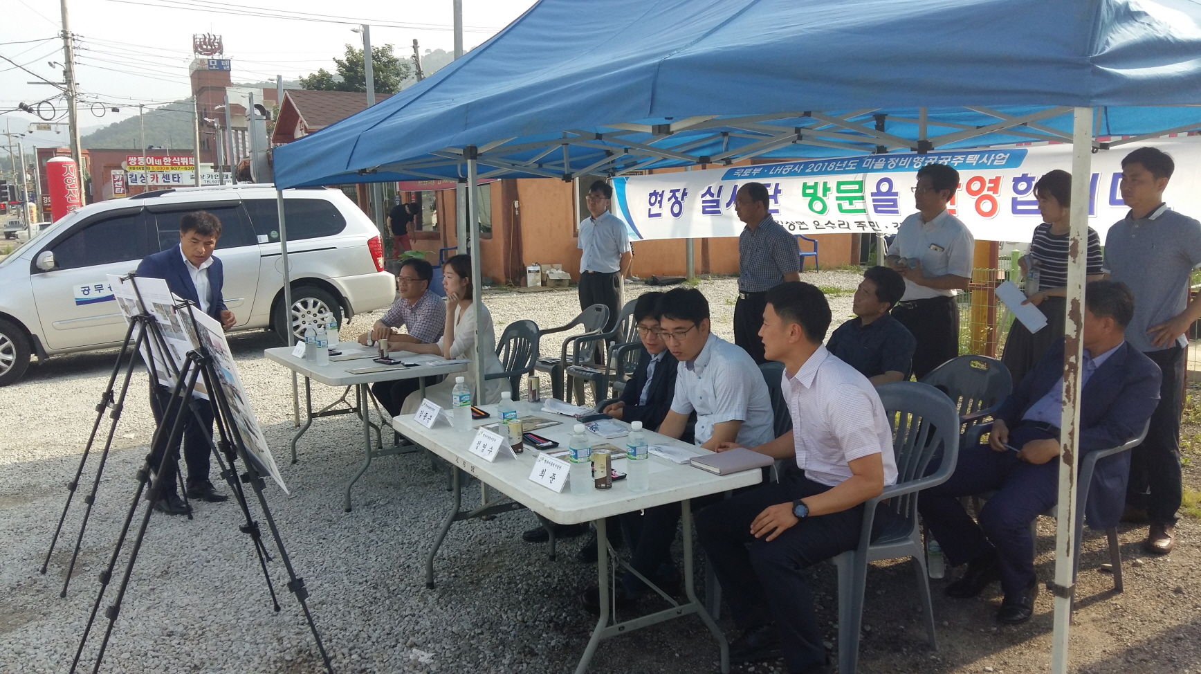 (사진 2매) 군 관계자가 현장조사단에 온수지구 현장을 설명하고 있다