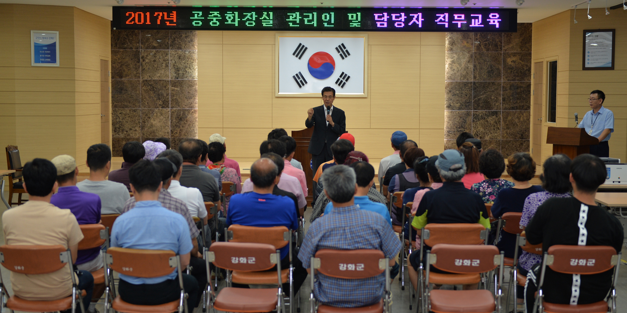 인천 강화군(군수 이상복)은 지난 14일 군청 진달래홀에서 효율적인 화장실 관리를 위한 ‘공중화장실 관리인 및 담당자 직무교육’을 실시했다.