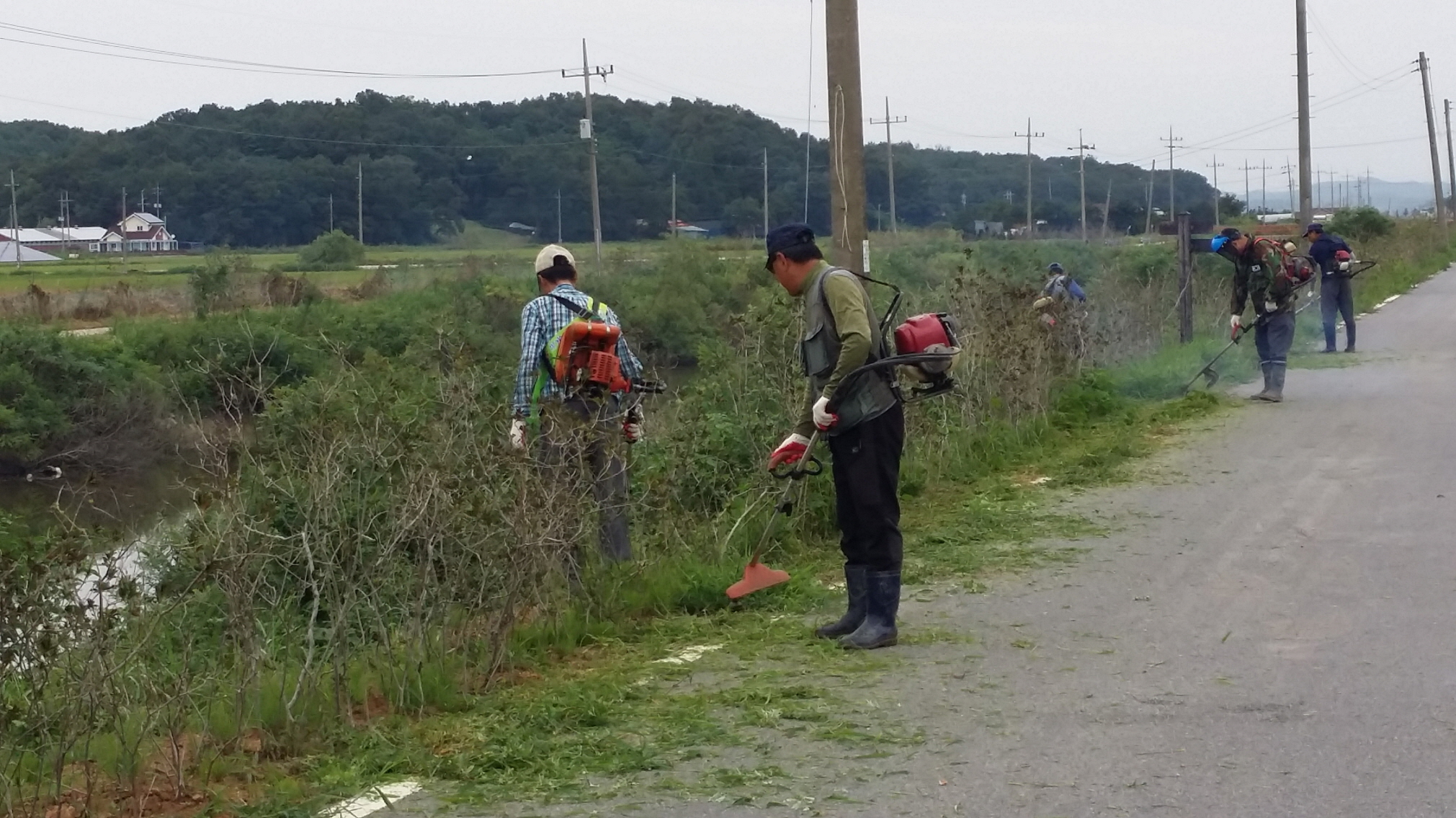 (사진 2매) 1. 농촌지도자회 관계자가 도로 제초작업을 하고 있다