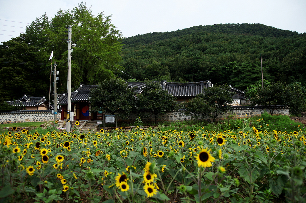 (사진: 교동향교 진입로에 만개한 해바라기)