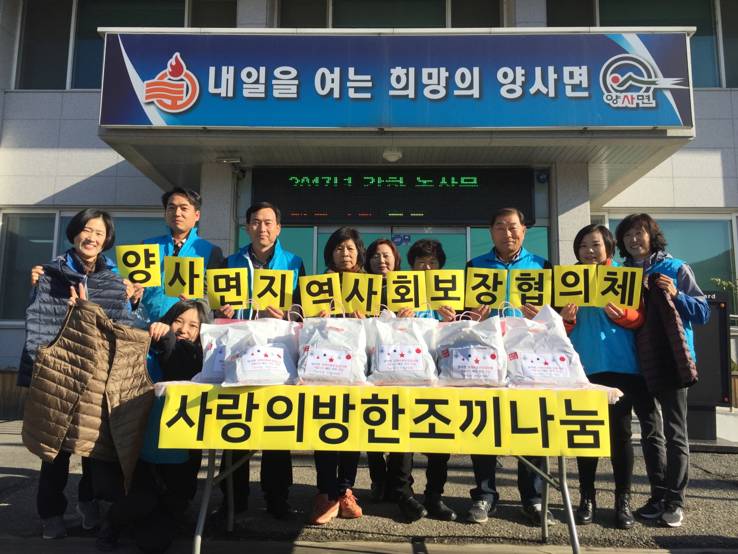 한태성 양사면장은 “아직도 많은 이웃들이 추위에 어려움을 겪고 있다”며 “복지사각지대를 계속 발굴하는 등 빈틈없는 겨울나기 준비로 어려운 이웃들이 따뜻한 겨울을 보낼 수 있도록 최선을 다하겠다”고 밝혔다.