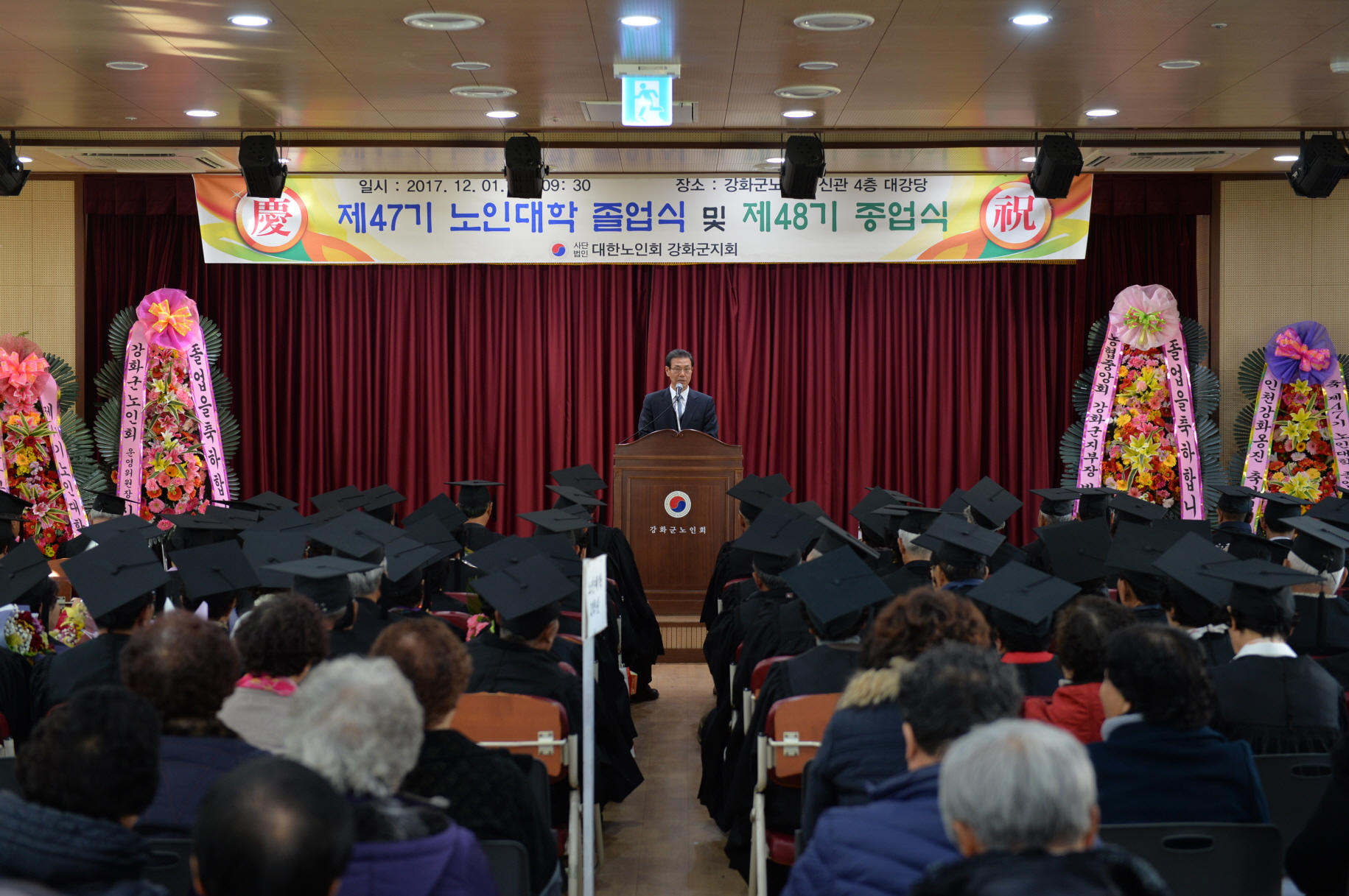 대한노인회강화군지회 부설 강화군노인대학(학장 한동연)은 지난 1일 강화군노인복지관 대강당에서 제47기 노인대학 졸업식 및 제48기 노인대학 종업식을 가졌다.