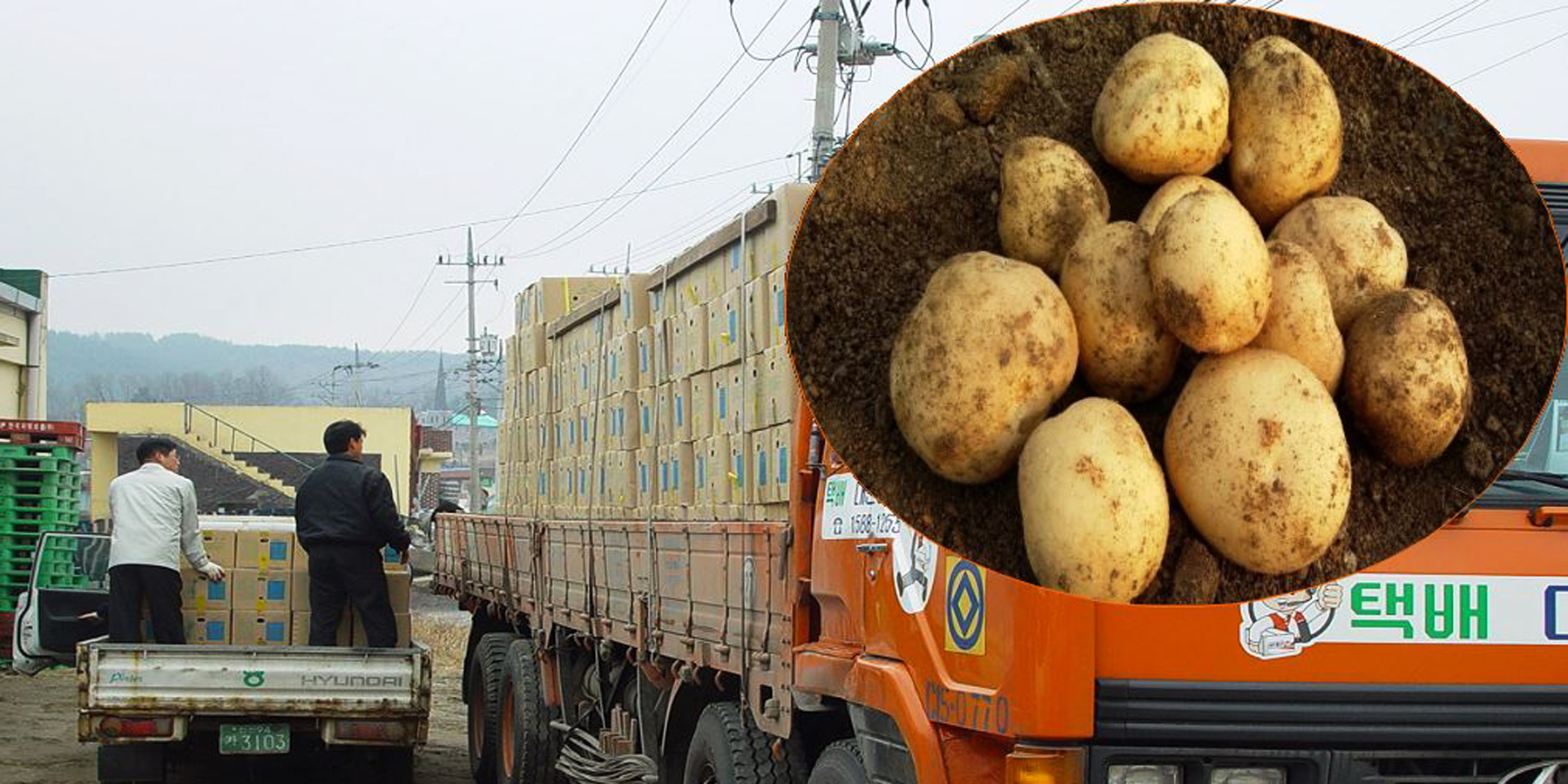 (사진: 군 관계자가 봄감자 보급종을 하차하고 있다)