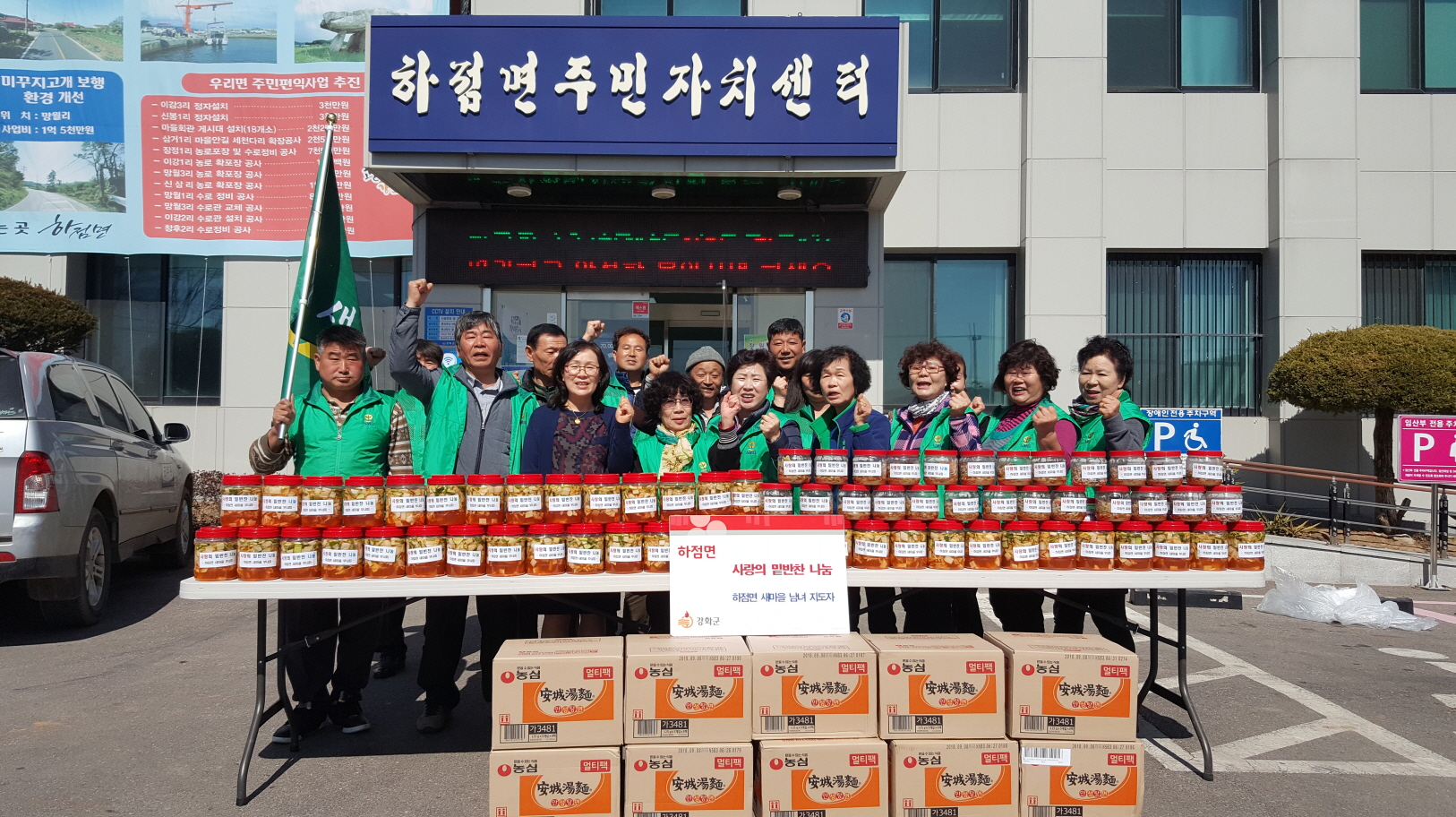 평소 하점면 새마을회는 쌀, 김치, 고추장, 밑반찬, 이불 등 정기적으로 나눔 봉사를 실시하여 이웃 사랑의 따뜻한 마음을 직접 전달하며 훈훈한 지역사회 만들기에 앞장서고 있다.