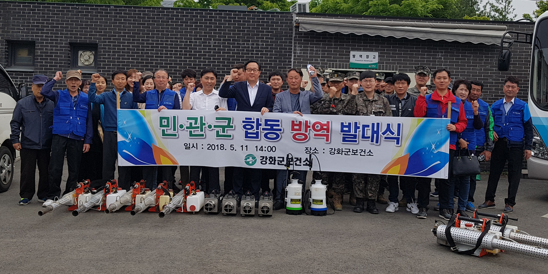 강화군은 지난 11일 군 보건소에서 민‧관‧군 합동 방역단 발대식을 갖고 말라리아 등 모기 매개 감염병 차단에 나섰다.
