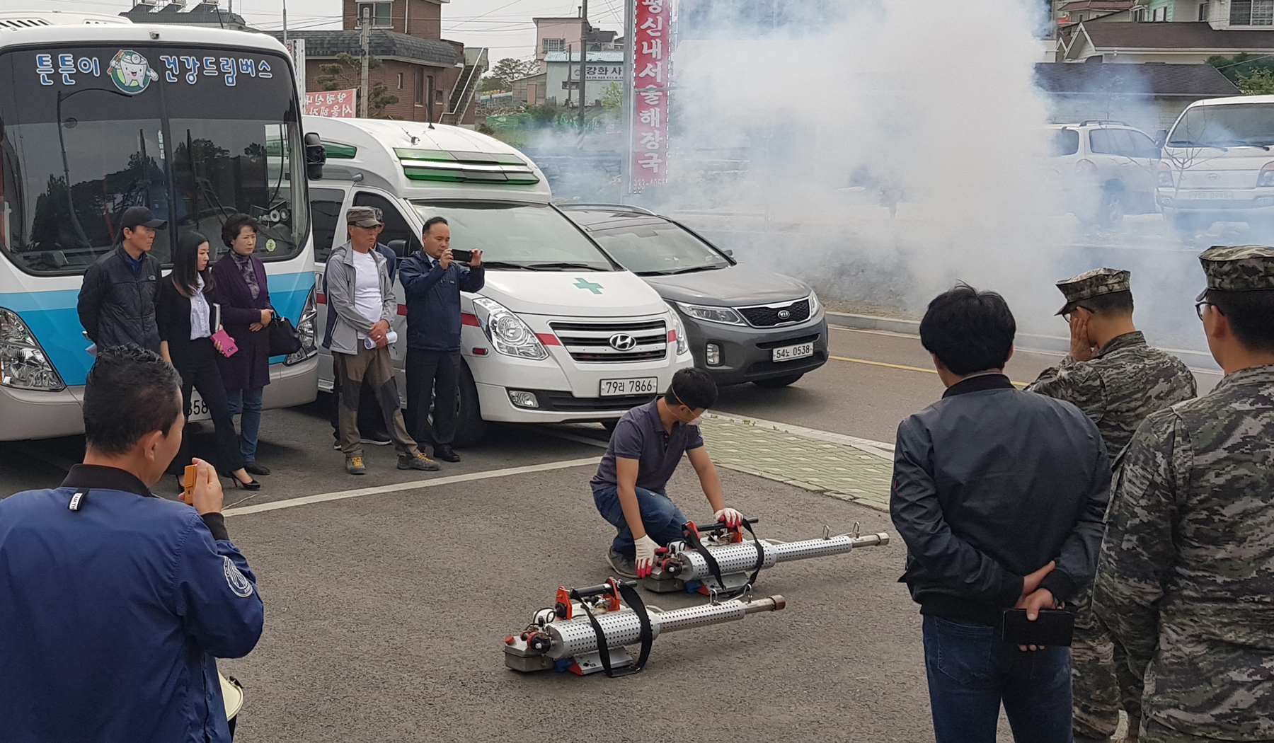 군은 보건소 방역단 외에 별도의 민간위탁업체 방역반을 운영해 분무방역 및 유충방제를 중점적으로 추진하고 있다. 하수구 및 정화조 등에는 연막소독을 선별적으로 실시하고 있으며, 취약지역 주민을 대상으로 휴대용 방역소독기 대여 사업을 추진해 군민의 자율적인 방역 참여를 유도하고 있다. 또한, 공원 및 나들길 등에 해충 포충기와 모기 기피제 자동분사기를 설치해 감염병 발생을 사전에 차단해 나가고 있다.