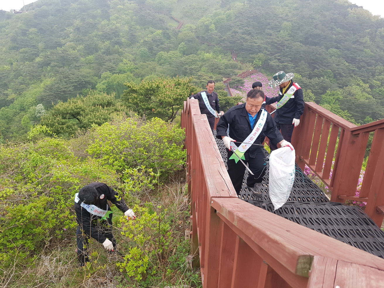 산불순찰 외에도 지난달 열렸던 진달래 축제 후 파손된 데크와 안전로프 등 시설물 보수와 산지정화 활동도 병행하며 산림보존에 만전을 기하고 있다. 지난 14에는 고려산 진달래 군락지에서 500L 가량의 쓰레기를 수거하고, 낙엽 등 산불위험이 있는 산림부산물을 제거했다.