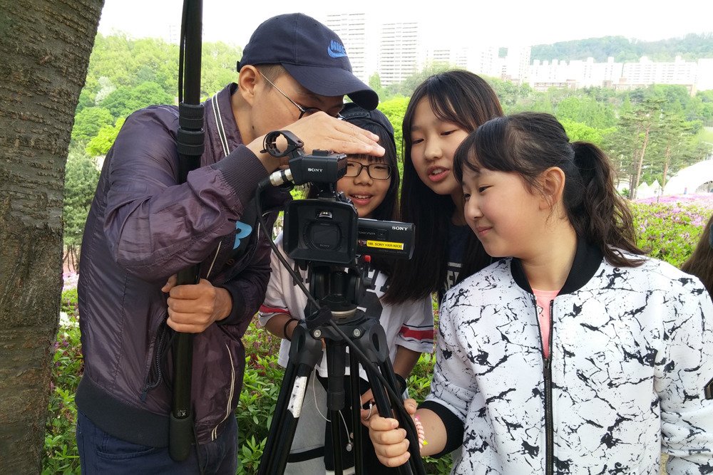 (사진 2매) 1. 영상을 제작하고 있는 학생들