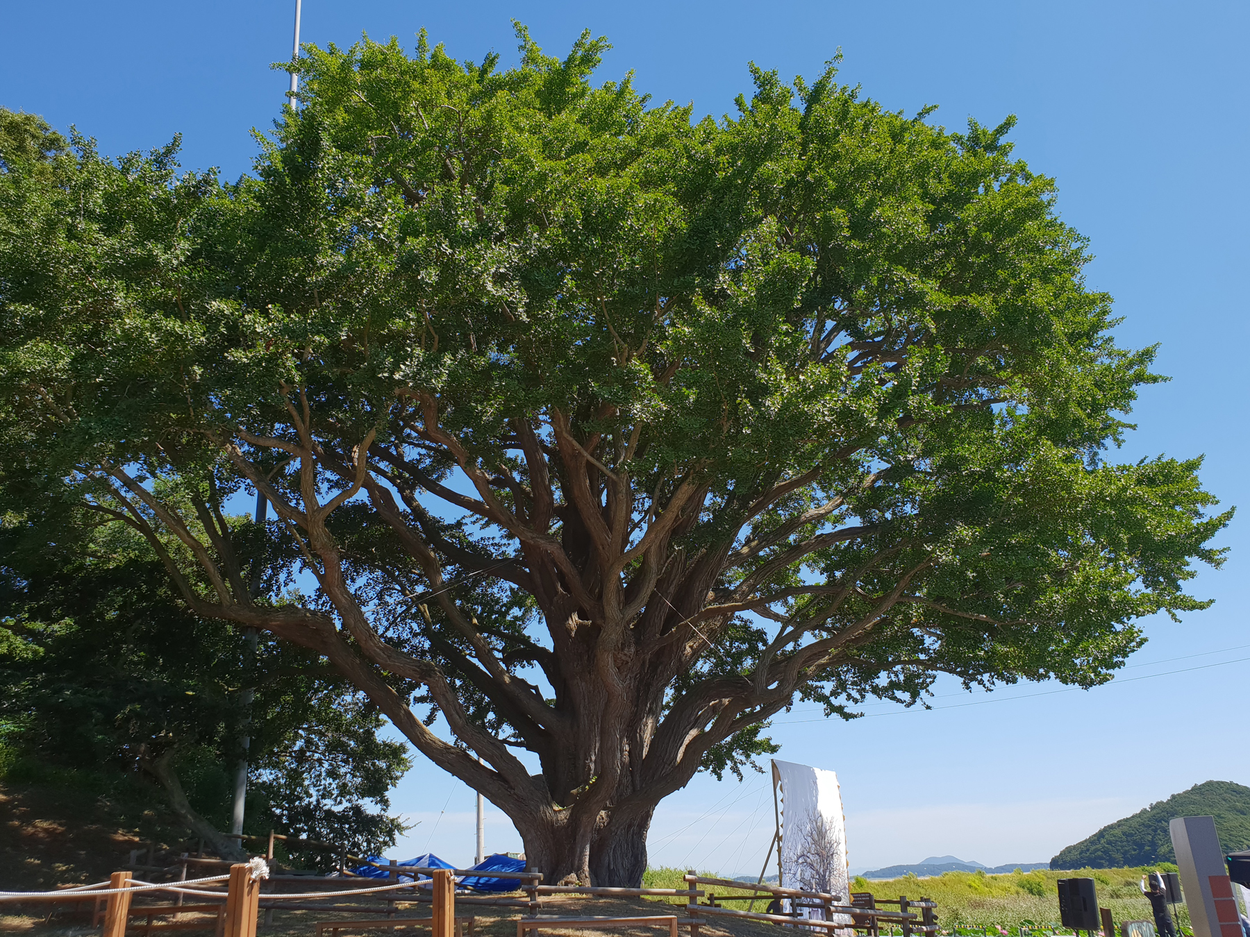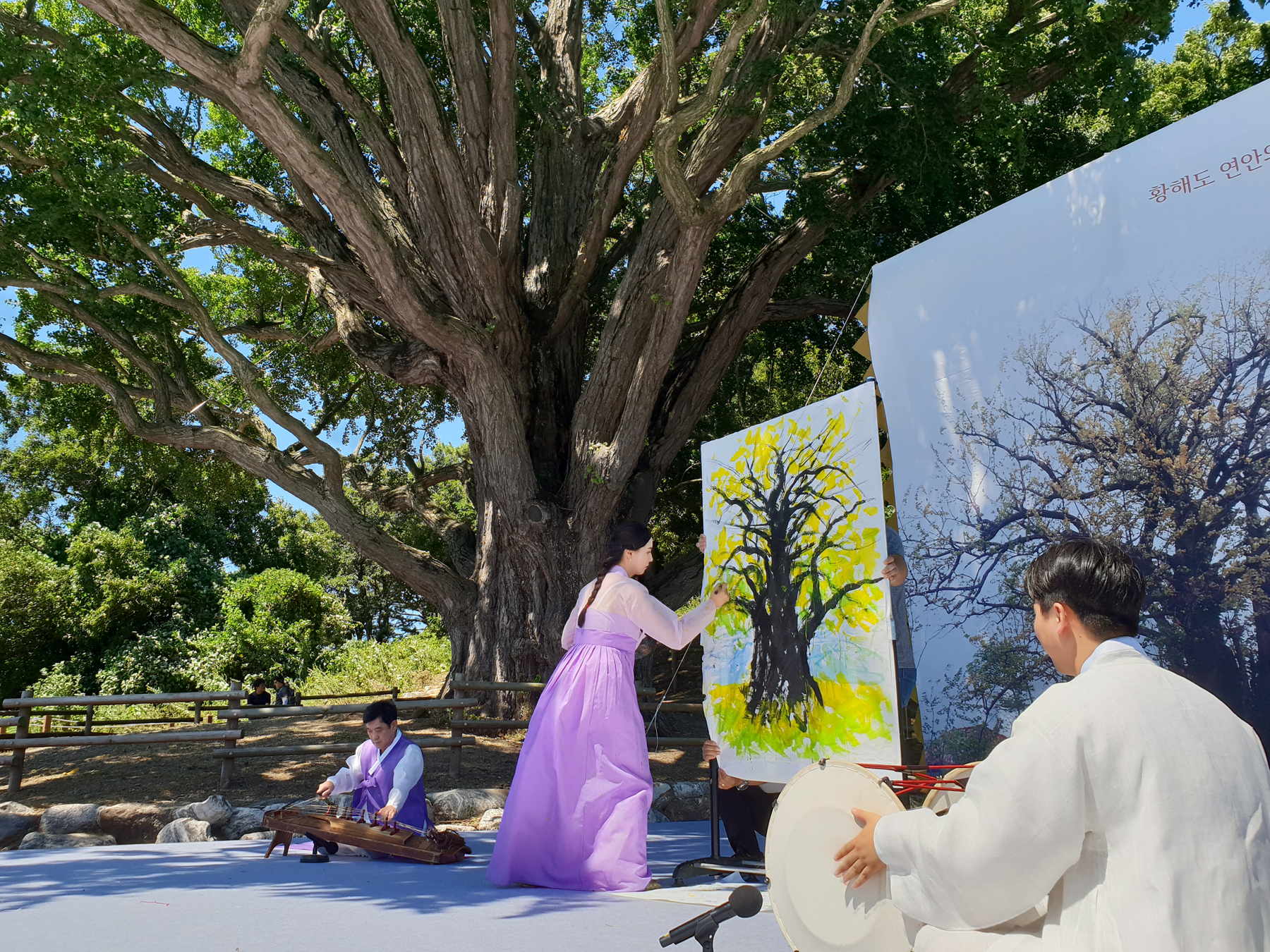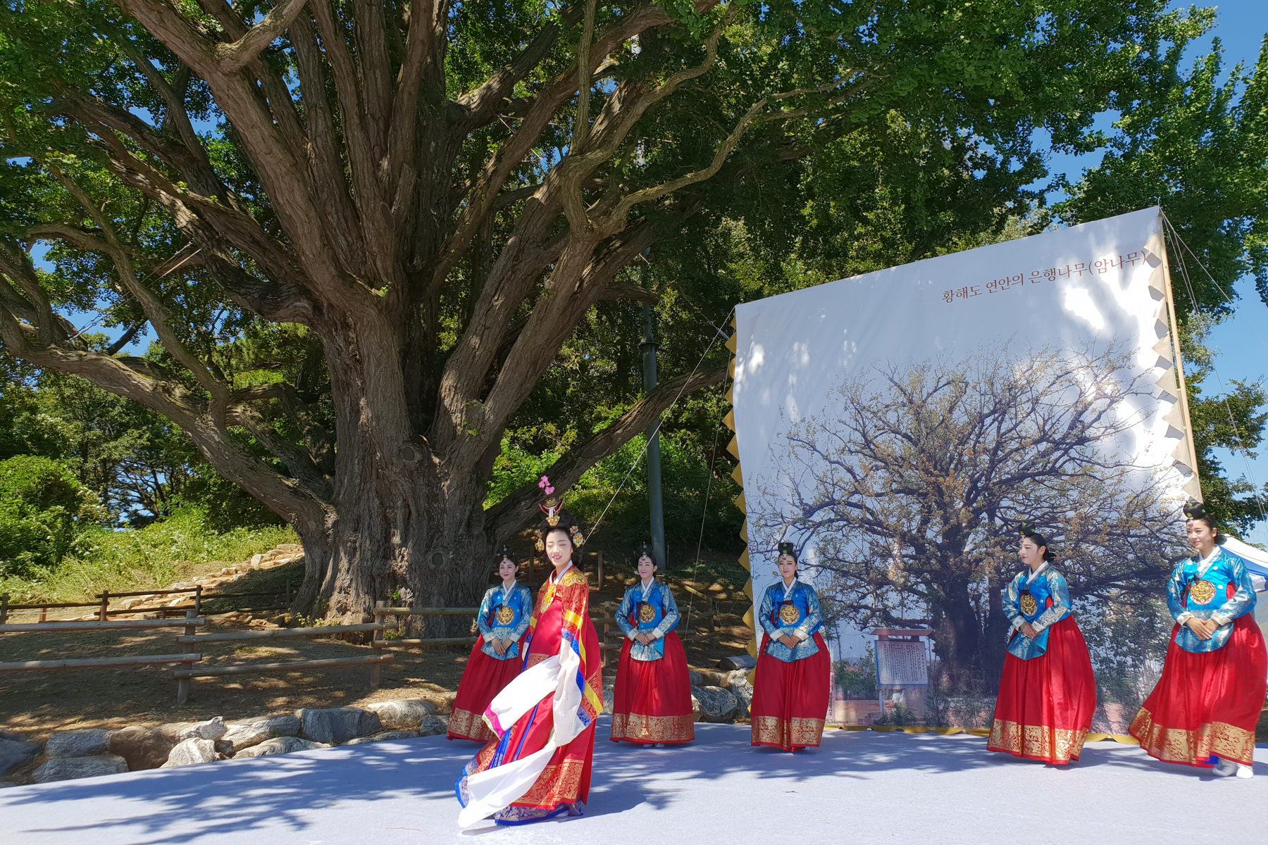 이날 행사는 사전공연으로 강령탈춤보존회의 마당놀이를 시작으로 기념사 및 축사, 헌수(나무 주변 막걸리 붓기)와 축하공연 등이 이어졌다. 축하공연으로는 평화의 시 낭송, 태평성대‧살풀이‧판소리 등 전통공연, 북한의 암나무를 기리는 수묵화 그리기 퍼포먼스에 이어 전 출연진과 지역주민이 어우러진 화합의 대동놀이가 펼쳐졌다. 특히, 은행나무 앞에 은행나무 부부의 생일상을 복원해 놓아 참석자들의 이목을 끌었다.