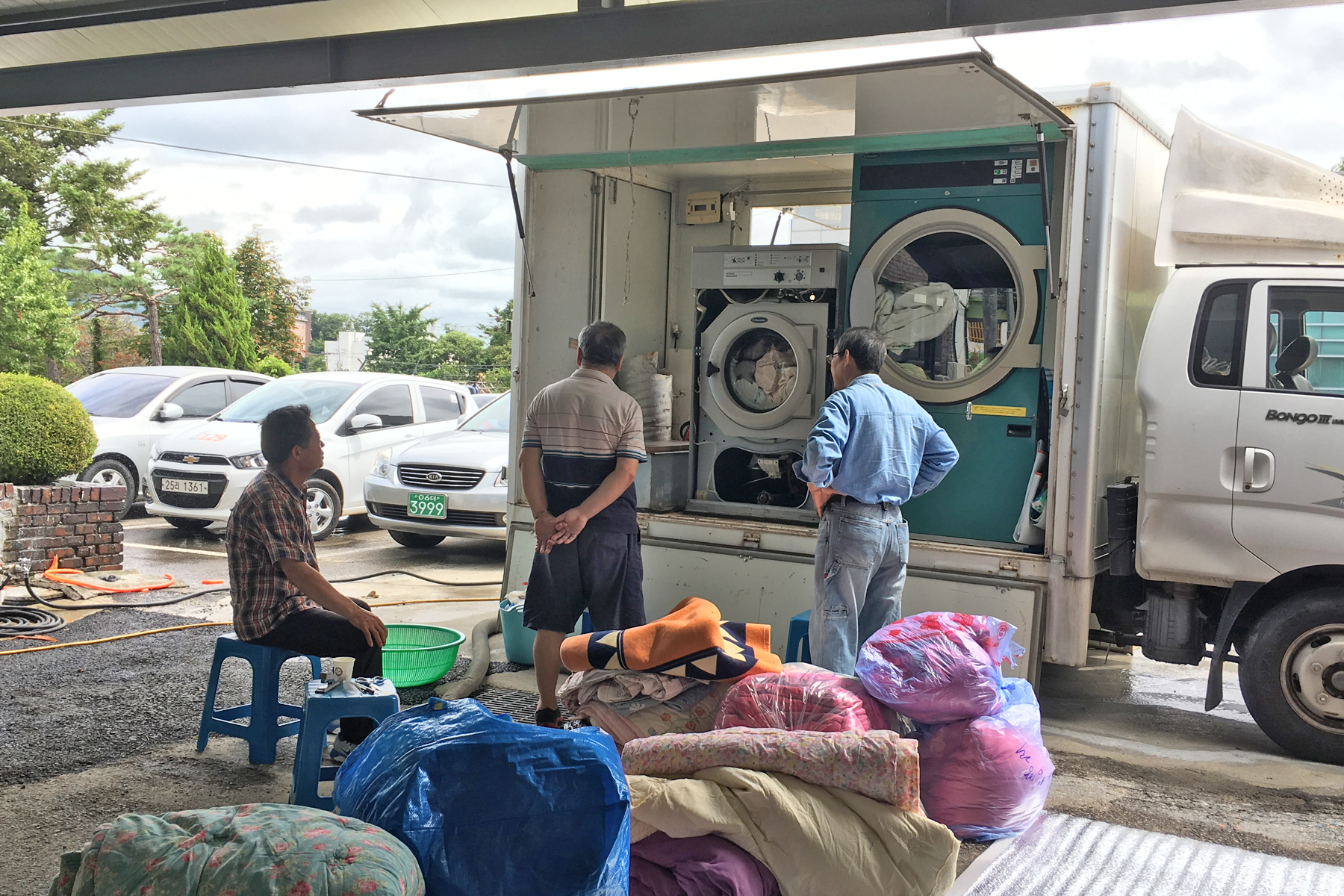 강화군 화도면 지역사회보장협의체(위원장 김삼기)는 지난 21일 면사무소 주차장에서 찾아가는 세탁서비스인 ‘사랑의 빨래터’를 운영했다.