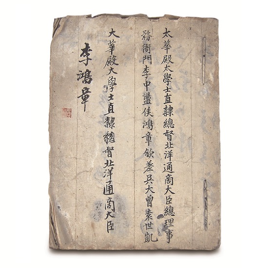 이중 첫째 장은 이홍장과 원세개의 이름과 직위를 기록한 후 날인이 되어있다.