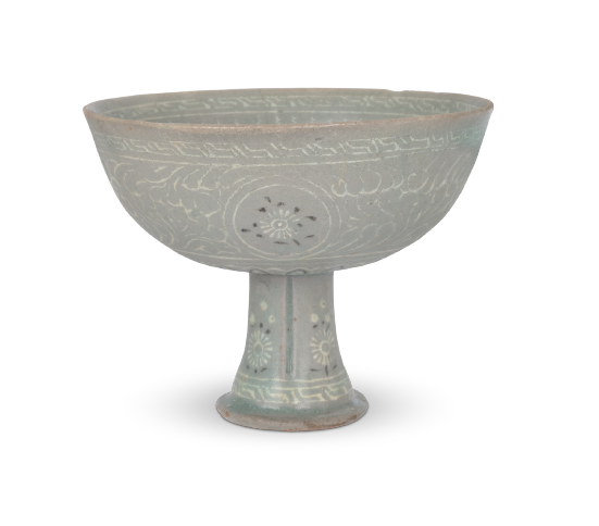 청자상감국화운학문고족배 (靑磁象嵌菊花雲鶴文高足杯, Celadon Porcelain Cup on Horse)