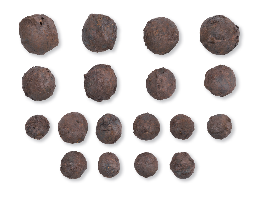 강화산성 남장대지에서 출토된 총통의 발사체 철환이다. 이 철환들은 5㎝미만의 작은 탄환으로 조란환鳥卵丸이라고도 불린다. 출토된 철환의 단면 대부분 원형인데, 모두 철환의 중앙부에서 한 줄 돌기형태의 주조흔이 확인된다.