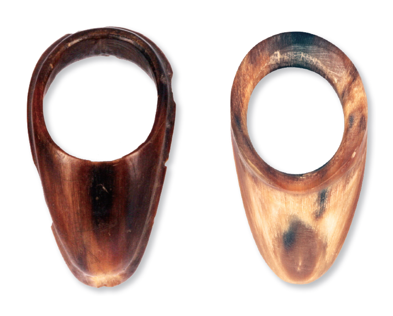 깍지는 맨 손가락으로 활을 당기는 것이 버겁기 때문에 손가락을 보조하는 도구이다. 활을 쏠 때에 시위를 잡아당기기 위하여 엄지손가락의 아랫디에 끼는 뿔로 만든 도구로 암깍지와 숫깍지로 구별된다. 가볍고 튼튼한 소뿔 깍지는 재질의 특성상 손가락에 땀이 나도 그것을 흡수해서 증발시기 때문에 여름에 좋은 재질이다. 깍지는 손가락에 맞춰서 엄지손가락에 끼우지만 손가락이 아파 실제 손가락 둘레보다 조금 더 크게 만들어서 가을 덧대고 사용하였다