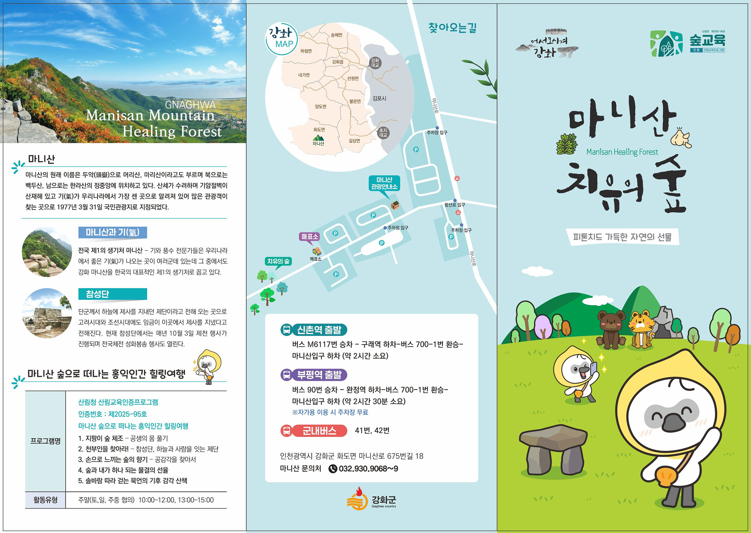 - 문의처: 마니산 치유의 숲 카카오 채널